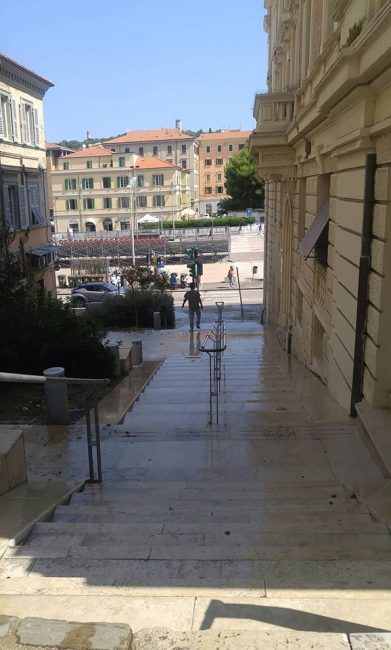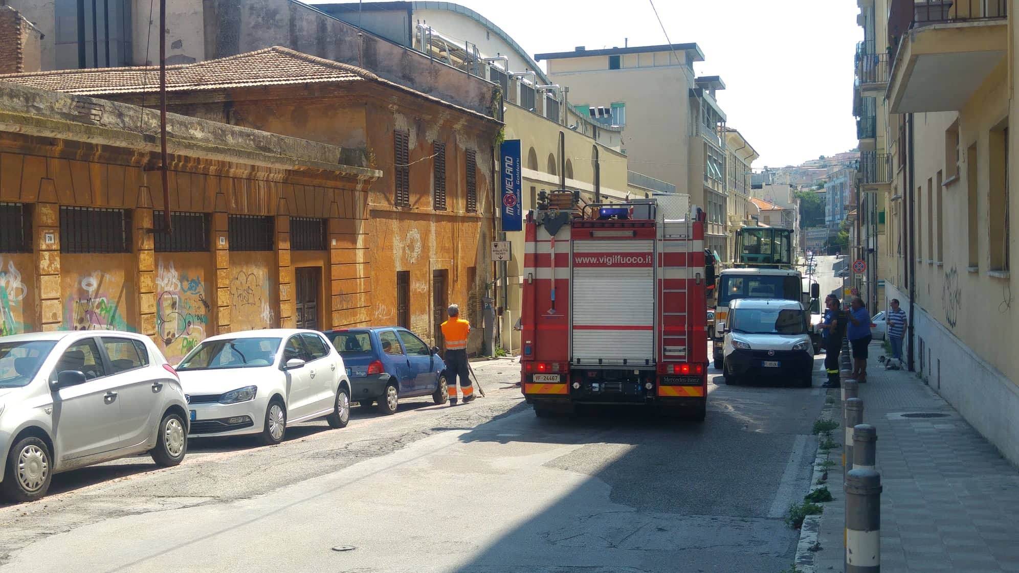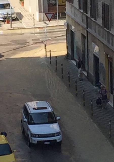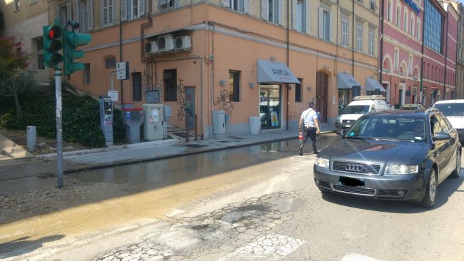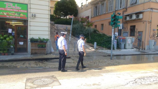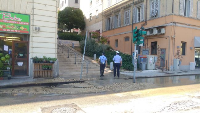 Scoppia una tubatura in via Montebello, fiume d’acqua e di fango lungo la strada. Inondata via Simeoni, via San Martino e piazza Pertini, travolgendo i motorini in sosta ed i bidoni della raccolta differenziata. Scattato immediatamente l’intervento dei vigili del fuoco di Ancona che stanno verificando anche le condizioni della multisala Movieland e del parcheggio Stamira. In via San Martino, nell’area delle scalette che la collegano a via Montebello, l’acqua è entrata al primo piano dei palazzi che corrono lungo la scalinata, un agente della polizia municipale ha dovuto trasportare in braccio anche una anziana intrappolata lungo le scale tra via Montebello e via San Martino. “Gli addetti della Multiservizi hanno aperto lo scavo, individuato la conduttura e stanno verificando le condizioni del terreno circostante alla rottura – fa sapere il Comune con una nota delle 14 -. L’acqua che usciva copiosa aveva allagato e trasportato fango lungo via San Martino e in via Simeoni tanto che la polizia municipale, intervenuta subito sul posto, ha deciso per sicurezza di chiudere immediatamente al transito la Galleria San Martino (le auto sono deviate in via XXIX Settembre) dove la viabilità è tornata normale soltanto dopo le 11.30, quando gli operai di Multiservizi avevano individuato il punto di rottura e bloccato la perdita. L’erogazione dell’acqua è stata sospesa soltanto per l’adiacente cinema e due abitazioni. “Prima di riaprire la sede stradale – spiega l’assessore alle manutenzioni Stefano Foresi – abbiamo fatto pulire da Anconamente via Simeoni e via San Martino che erano coperte da detriti trasportati dalla forza dell’acqua e che avevano raggiunto anche la scalinata che va da via Montebello a via san Martino. Stiamo lavorando per riaprire la strada a senso unico alternato”. Sul posto sono intervenuti anche i vigili del fuoco che hanno delimitato il percorso dell’acqua per evitare che raggiungesse alcuni edifici vicini al luogo della rottura. Modificati anche i percorsi degli autobus, la linea 7 di Conerobus transita per Piazza San Gallo, in via Circonvallazione, via Scandali e prosegue per via Veneto, mentre la linea 8 prosegue per via Veneto (anziché per via Montebello), via XXIV Aprile, via Circonvallazione e rotatoria di via Scandali. La stessa via Montebello era stata interessata per mesi da lavori sulla rete idrica e fognaria che aveva portato alla sostituzione delle tubature. Un danno simile è avvenuto appena un mese fa in via Scrima, anche qui la rottura della rete aveva prodotto un fiume di acqua e fango lungo la sede stradale.