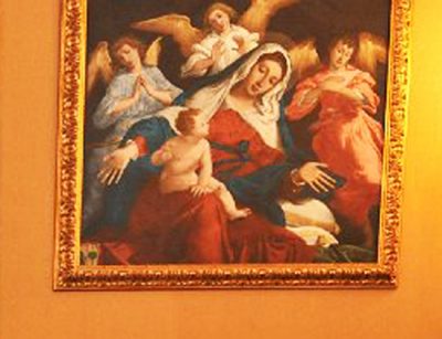 La Sala Gialla di Osimo, con a destra sullo sfondo, la riproduzione della tela rubata di Lorenzo Lotto