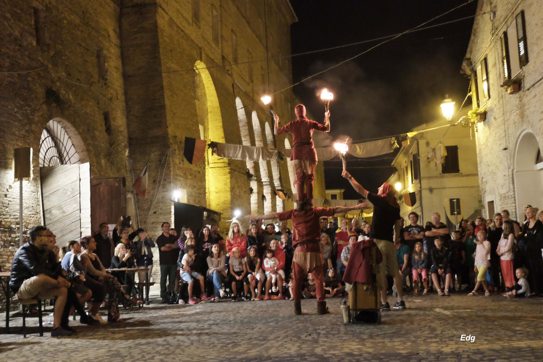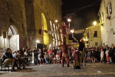 Gran finale con un boom di visitatori per le Feste Medievali di Offagna che quest’anno hanno puntato sul volontariato e sul sostegno economico degli sponsor riuscendo a mantenere la qualità degli spettacoli e il gradimento del pubblico. L’unico fuoriprogramma, accompagnato da un coro di condanna, sono stati i 7 lampioni mandanti in frantumi da qualche vandalo dietro alla Rocca, nell’ultima notte di festa, quella tra sabato e domenica, mentre il paese veniva illuminato dai fuochi d’artificio. Danni che peseranno su una comunità che ha dimostrato con sacrificio di sapersi rimboccare le maniche dopo il dissesto finanziario dei conti pubblici dichiarato nel 2016. Stamattina molti abitanti del borgo medievale sono impegnati come volontari a smontare il palco di piazza della Contesa per preparare quello di New Evo Festival, la sesta rassegna di musica dal vivo che partirà mercoledì 1 agosto.