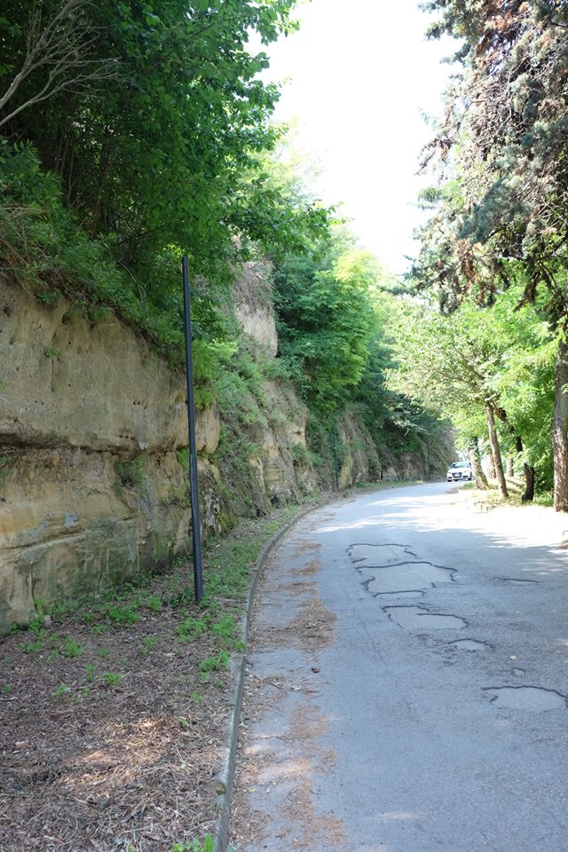 I lampioni dell’illuminazione pubblica distrutti dietro alla Rocca di Offagna