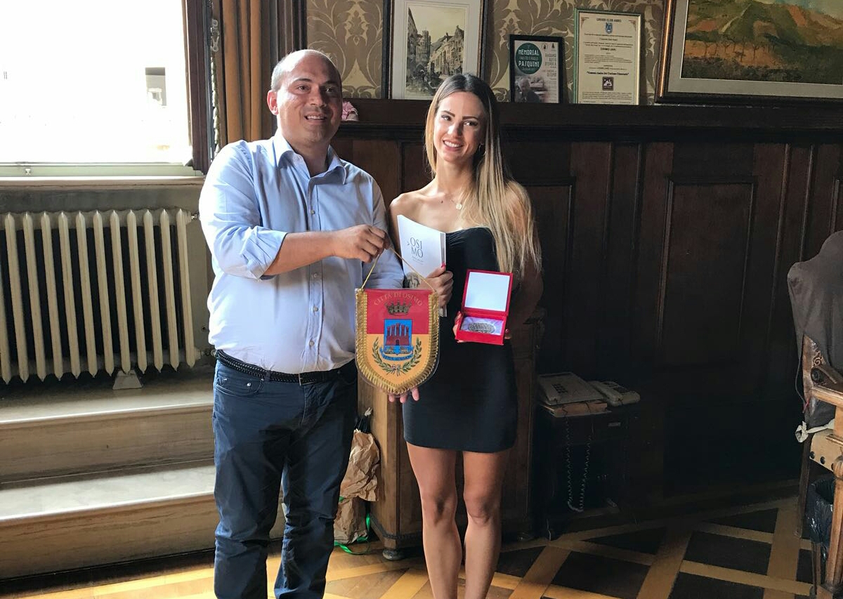 OSIMO - La studentessa universitaria, laureanda in Giurisprudenza, sogna di entrare nella Polizia di Stato. Stamattina la 26enne con la fascia di Miss Rocchetta Marche 2018 era ospite a Palazzo Comunale. Osimo fa il tifo per lei alle finale del concorso nazionale di bellezza