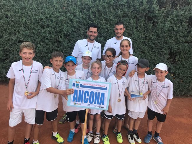 Un ‘altra grande affermazione per i nostri baby tennisti è arrivata anche dal Centro estivo della FIT a Serramazzoni (Modena) dove la selezione di Ancona è entrata nell’elite del tennis italiano arrivando quarta alla Coppa delle Province 2018 ( competizione riservata ai giovani dal 2007 al 2009), Il team dei capitani Larry Luchetti e Andrea Ramundo era composto da Diego Paoloni e Matteo Sabbatini (Junior Tennis Osimo) Michele Mecarelli (Janus Tennis Academy ASD) Arianna Silvi e Carlotta Bassotti (Circolo Cittadino Jesi Tennis Club), Ilary Pistola (MonteMarciano Tennis), Riccardo Lo Grippo (Circolo Tennis Camerata Picena), Alex Romano e Ludovico Trionfetti (ASD Nice), Valentina Pasquinelli (Circolo Tennis Moie Sporting Club).