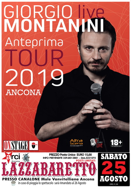 Giorgio Montanini in anteprima nazionale al Canalone della Mole con la sua prima tappa del tour 2019 del suo nuovo spettacolo di Stand up Comedy, il 25 agosto alle 21:30. Da domani (11 agosto) via alla prevendita dei biglietti.