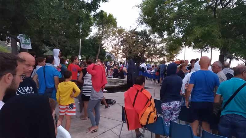 Il cielo nuvoloso prometteva tempesta stamattina a Numana. E le prime gocce di pioggia hanno preceduto di qualche minuto proprio l’assolo tumultuoso che conclude L’Estate de ‘Le quattro stagioni’ di Antonio Vivaldi, interrompendo così il tradizionale Concerto dell’Alba, interpretato quest’anno dal M°Marco Santini, accompagnato al clavicembalo dal M° Riccardo Lorenzetti e dai musicisti della Astralmusic Strings. L’esecuzione del passaggio finale del terzo movimento de L’Estate, quello che descrive il pastore spaventato dal temporale improvviso, è stata sospesa ed il numeroso pubblico che si è ritrovato a Piazza Nuova alle 5.15 per assistere alla nona edizione dell’evento culturale, ha cominciato a scemare. Applauditissimi gli artisti, presentati dal giornalista Maurizio Socci. Tra i tanti appassionati, turisti e numanesi, seduto in prima fila anche il sindaco Gianluigi Tombolini. Marco Santini, violinista compositore, stamattina ha annunciato per dicembre il lancio della sua nuova opera che sarà pubblicata da un’etichetta prestigiosa, la Universal. L’allerta meteo, ha consigliato per stasera anche al Comune di Numana di rinviare le manifestazioni per la Festa dell’Assunta al 16 agosto.