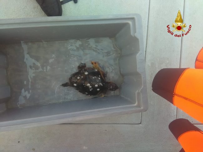 La tartaruga recuperata dai vigili del fuoco