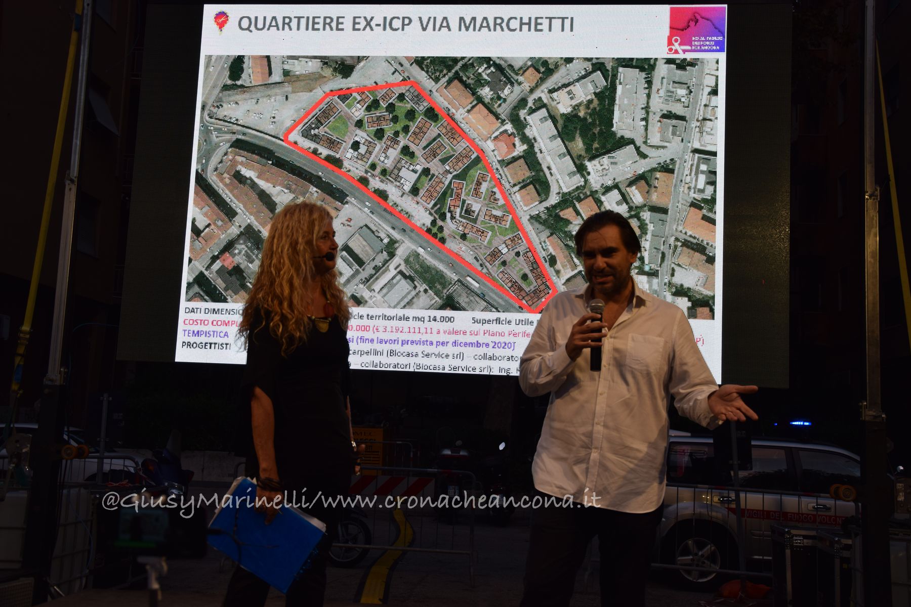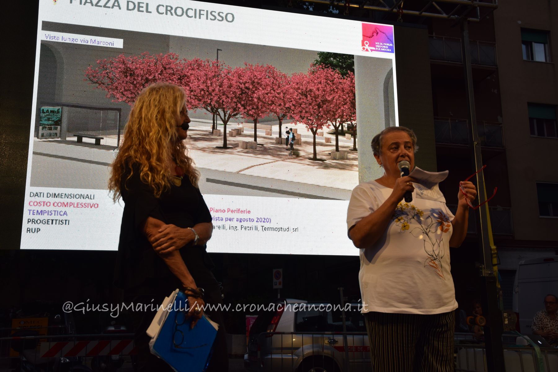 E’ iniziata alle 19 la manifestazione di protesta contro la cancellazione del fondi dei Bandi periferie. Molti i partecipanti che si sono ritrovati in piazza del Crocifisso e via Marconi, la zona pedonale sotto gli Archi, dalle facciate illuminate di vari colori.‘I patti non hanno colore’ è infatti lo slogan della serata dedicata ai progetti di riqualificazione, finanziati dallo Stato per 12 milioni di euro, cui si aggiungono 4 milioni di cofinanziamento ma ora in stand by, congelati dopo le ultime decisioni del Senato. Davanti al maxi schermo dove sono scorse le immagini dei progetti, e si sono alternati al microfono i rappresentanti di Cgil, Cisl e Uil, di Confersercenti, Confcommercio, Cna e Confartigianato per ribadire come questo blocco dei fondi metta in difficoltà non solo i Comuni ma anche le tante imprese impegnate nei lavori di riqualificazione. Pertanto è stato rinnovato l’invito ai parlamentari marchigiani, “di qualsiasi colore essi siano”, a fare fronte comune per superare l’impasse tecnica che frena la corresponsione delle risorse, per permettere il restyling dei quartieri d’ingresso nord di Ancona. Perchè il prossimo 11 settembre non si trasformi in una data negativa e purtroppo evocativa per la città.