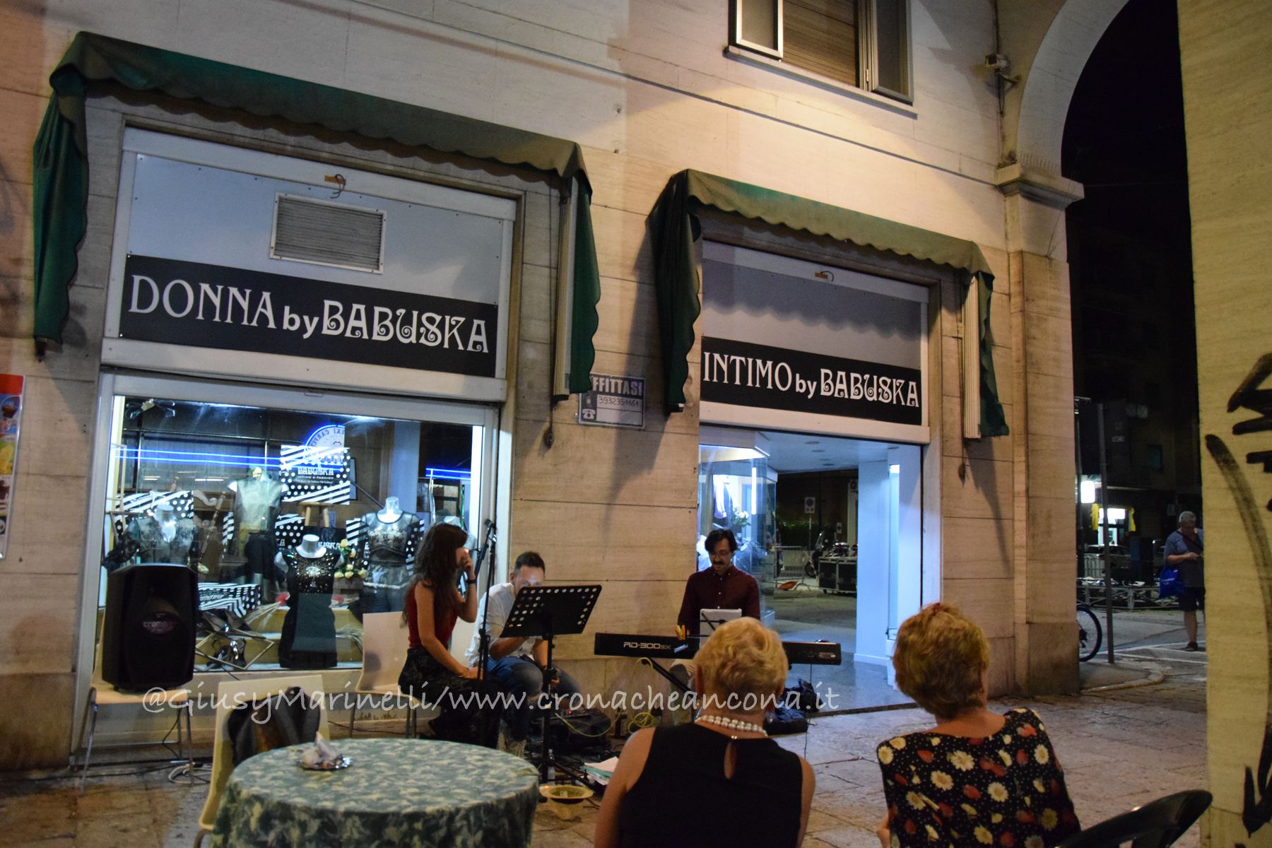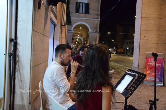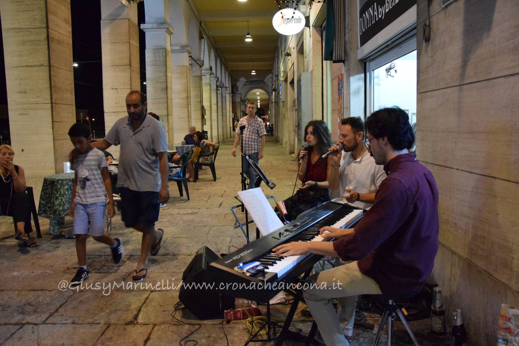 Nella zona pedonale degli Archi, in varie postazioni, erano presenti anche musicisti con piccole formazioni : Amedeo Grifoni con un duo chitarra e percussioni, Alex Andreoni, chitarra e armonica, Nicola Principi con un duo violino e tastiera, i Moody’s groove con al cantante Alessandra Pasquini, Mattia Bonaventura con un duo chitarra e tastiera e alcuni studenti musicisti del liceo Rinaldini. Aperti i locali per aperitivi e cena all’aperto. (GUARDA IL VIDEO)
