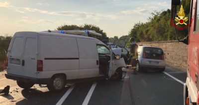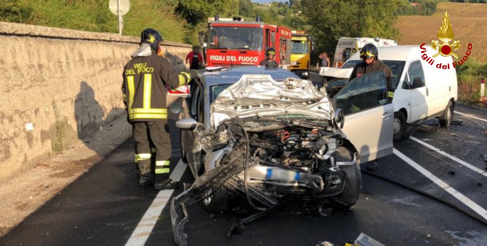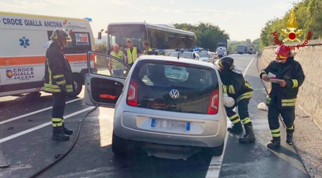 Nel pomeriggio di oggi alle ore 18 circa, i vigili del fuoco sono intervenuti sulla Statale 16, ad Ancona, per un incidente stradale. Per cause in fase di accertamento, all’uscita della galleria Montagnolo (lato Torrette), un furgone e un’auto si sono scontrati frontalmente. Prima dell’arrivo della squadra dei pompieri i due conducenti feriti, un 24enne, al volante della vettura in un codice rosso e un ventenne soccorso invece in codice giallo erano già stati trasportati al pronto soccorso di Torrette dal personale del 118 e da due ambulanze della Croce Gialla. Sul posto sono intervenute anche una pattuglia della Polizia locale di Ancona per regolamentare il traffico e una pattuglia della Polizia stradale per verbalizzare gli estremi del sinistro. I vigili del fuoco hanno messo in sicurezza i veicoli coinvolti nello scontro, uno dei quali alimentato a gas metano.