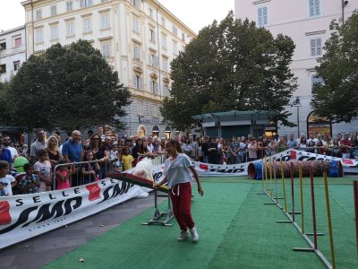 Anconagility, la squadra dorica di Agility Dog, partecipe alla Notte Bianca di Ancona con varie esibizioni cinofile. Il campo è stato allestito in piazza Roma, lato fontana dei cavalli, e dalle 18.30 di oggi e fino alle 23.30 sarà possibile ammirare simpatici cani di razza e splendidi meticci durante le loro evoluzioni tra gli ostacoli e nelle loro performance di dog dance e educazione avanzata. Sarà inoltre possibile entrare con il proprio cane in campo e divertirsi a provare le varie discipline cinofile con l’assistenza degli istruttori ricevendo un gadget per la partecipazione. Educazione, dog dance, agility e tanto altro sabato in piazza Roma. Anconagility è addestramento e sport al top. (info. info@anconagility.it o 339-1080806).