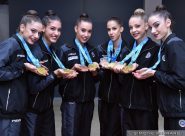 BULGARIA – La squadra nazionale si aggiudica a Sofia il gradino più alto del podio iridato con il punteggio di 22.550 nell’esercizio misto con 3 palle e 2 funi montato su un remix di “Eye of the tiger”. Nel team vincente anche Martina Centofanti e Letizia Cicconcelli della Faber Fabriano