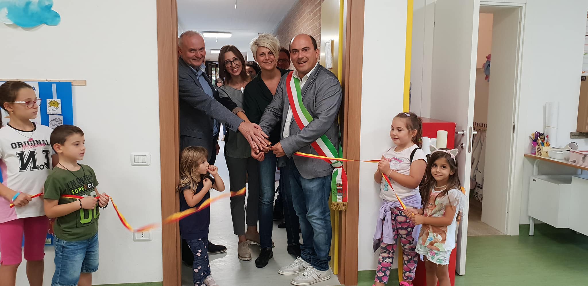 OSIMO - Oggi pomeriggio la cerimonia di inaugurazione dell'asilo ampliato. Un investimento di circa 150 mila per la realizzazione di una nuova aula di 100 mq, per i nuovi servizi igienici e per la sistemazione del giardino