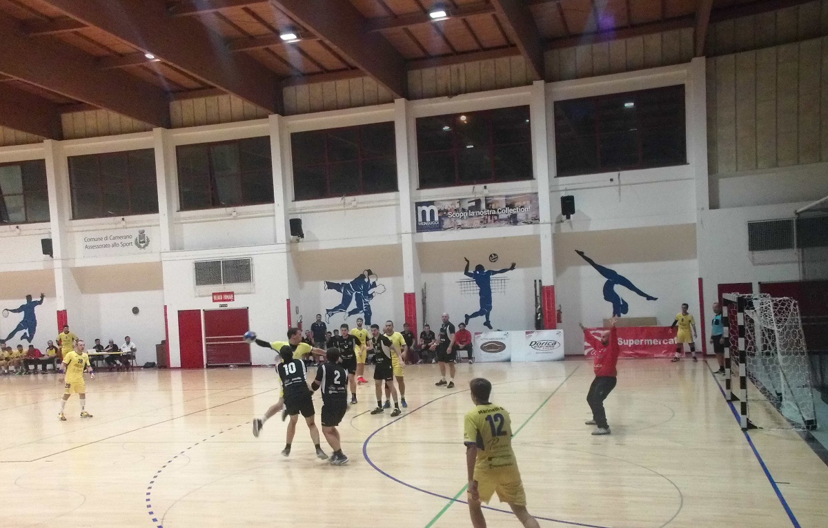 La Pallamano Camerano esce sconfitta a testa alta. Davanti al pubblico amico, nella “prima” di campionato casalinga, i gialloblu ieri sono stati battuti per 19-24 dal Ferrara United. Una sfida in cui i ragazzi di coach Sergio Palazzi hanno tenuta botta agli avversari per larghi tratti del match, salvo cedere nel finale. Infatti nel primo tempo la Pallamano Camerano ha dato vita ad un botta e risposta emozionante con gli ospiti: buona circolazione di palla in attacco e una certa solidità difensiva, grazie anche alle parate di Sanchez, hanno limitato il potenziale offensivo degli avversari che hanno trovato solamente un margine di +2, 9-11, proprio nelle ultime battute prima che la rete di Badialetti fissasse il punteggio sul 10-11 con cui si è andati al riposo lungo. Alla ripresa delle ostilità i gialloblu rimangono attaccati agli avversari poi il break di 0-5, 14-20, a metà frazione ha sostanzialmente chiuso il match a favore di Ferrara con i padroni di casa che non hanno avuto più la forza per riaprire i giochi. “La partita si è decisa nel break di Ferrara – commenta coach Sergio Palazzi – Purtroppo non siamo riusciti più a recuperare anche se i ragazzi hanno disputato un ottima gara per 40 minuti, però gli ultimi 20 minuti non sono stati quelli che ci aspettavamo. Lavoreremo per avere maggiore continuità nell’arco della partita. Ferrara è stata brava a sfruttare i nostri errori e le nostre debolezze. Da parte nostra dovremo migliorare in difesa, perché in alcuni casi ci ha dato una grossa mano Mario Sanchez con le sue parate, e lavorare meglio in attacco perché 19 gol non sono molti”.