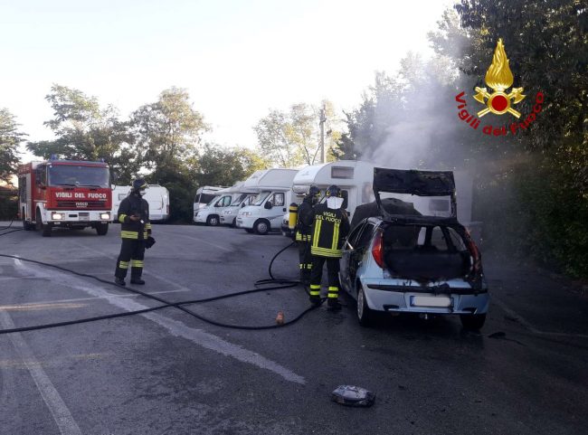 Stava guidando una vecchia Fiat Punto alimentata a gas metano, quando il motore della vettura si è incendiato forse per un corto circuito accidentale all’impianto elettrico.E’ successo oggi pomeriggio alle 17.30 in Circonvallazione a Polverigi. Il proprietario del mezzo immatricolato nel 2001, un anziano del posto, è stato costretto a scendere di fretta dall’abitacolo e mentre il rogo distruggeva la carrozzeria i vigili del fuoco del distaccamento di Osimo sono arrivati sul posto. La Punto è stata divorata e incenerita dalle fiamme ma si sono registrati stati attimi di pausa quando i pompieri hanno dovuto mettere in sicurezza la bombola del gas metano, montata sull’auto, che poteva esplodere perchè surriscaldata dal fuoco. Il mezzo, tra l’altro, si è fermato in uno spiazzo al margine di via Circonvallazione, dove erano parcheggiati diversi camper. Per portare a termine le operazioni di spegnimento dell’incendio e mettere in sicurezza la bombola, è stato necessario tempo. Le operazioni si sono concluse verso le 19.