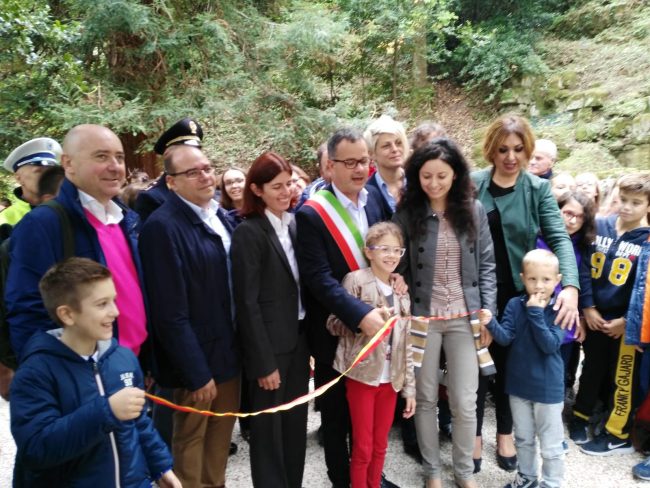 Taglio del nastro anche per Fonte Magna, simbolo della storia millenaria di Osimo (I sec. a. C.), restituita alla città con una nuova veste a seguito dei lavori di recupero eseguiti di concerto con la Soprintendenza Archeologia Belle Arti e Paesaggio delle Marche. «Da troppi anni trascurato, finalmente restituiamo alla città uno dei suoi luoghi più suggestivi – ha detto il vicesindaco Pellegrini –, spesso sono gli stessi turisti a ricordarci quanto sia importante questo sito archeologico». Il vicesindaco ha inoltre ringraziato le associazioni Italia Nostra e Font Art per l’impegno profuso nella valorizzazione del sito e l’azienda Cultura Arborea che ha eseguito i lavori. Presente alla cerimonia il funzionario della Soprintendenza Stefano Finocchi: «Fonte Magna è una delle poche fonti citate ufficialmente dalla letteratura e il suo recupero rappresenta un elemento fondante della memoria storica di Osimo». Fra gli interventi anche quello dell’Ing. Roberto Vagnozzi, responsabile del dipartimento del Territorio del Comune di Osimo: «La sinergia fra gli enti coinvolti nel progetto ha permesso di raggiungere un ottimo risultato seppur in presenza di un budget limitato». Il direttore dei lavori, l’architetto Cristina Antonelli, ha ringraziato l’amministrazione comunale e ha sottolineato come «la sistemazione di quest’area rientri in un disegno più ampio che punta ad inglobare tutte le fonti della città in una sorta di parco urbano ed archeologico di grande interesse, con l’obiettivo finale di valorizzare questi luoghi mediante l’utilizzo di materiali naturali come i totem botanici e storici».