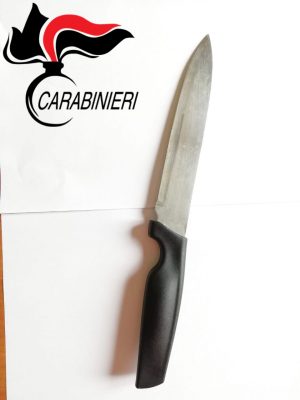 Il coltello con cui sono stati minacciati i Carabinieri.