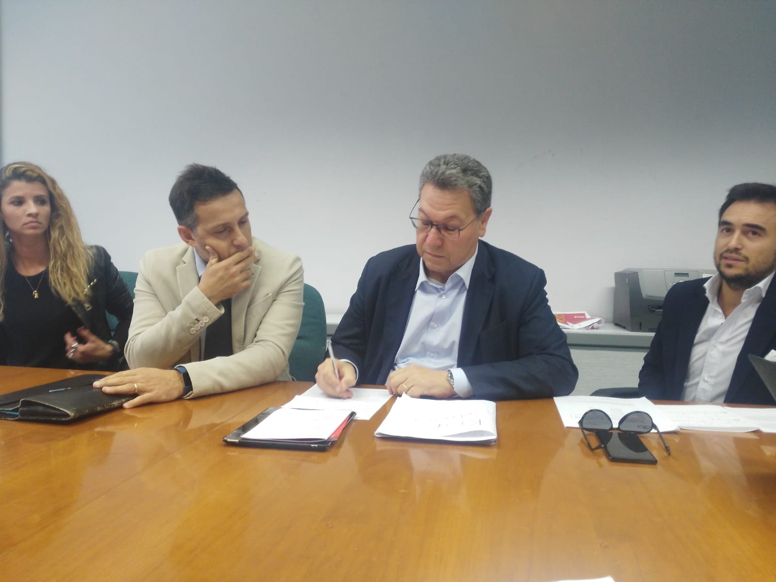 da sinistra Angelica Lupacchini, portavoce giovani FdI, Stefano Benvenuti Gostoli, il consigliere comunale, Carlo Ciccioli, il portavoce FdI comunale, Angelo Eliantonio