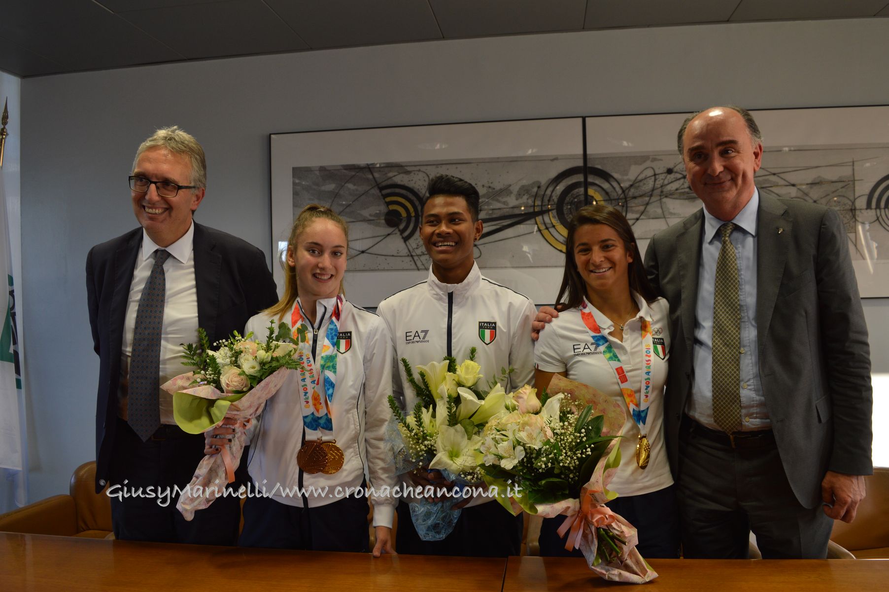 «Ci auguriamo che questa esperienza per voi sia uno stimolo ad andare avanti – ha affermato il presidente del Coni Marche, Fabio Luna -. Ci avete reso orgogliosi. Le Marche, pur essendo una piccola regione in termini di popolazione, in questa Olimpiade è arrivata quarta in Italia per numero di medaglie. Siete stati splendidi».