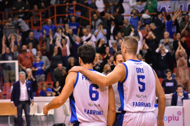 È una partita dalle mille sfaccettature, errori e buone giocate, la Ristopro mantiene il vantaggio per tutto il terzo quarto, gli ospiti sono sempre lì e non mollano la presa, alle giocate in post di Ivan Morgillo, rispondono Marchini e Giammò con canestri e assist fondamentali per tenere in partita la sua squadra. Il simbolo dell’equilibrio del match è dato dai risultati degli ultimi due parziali, perfetta parità. La Janus va a sprazzi, cerca come detto nel pitturato un Ivan Morgillo da 17 punti e 9 rimbalzi alla fine, ma fatica a costruire e trovare tiri aperti. Se li costruisce Santiago Boffelli, che consegna un bombolone di ossigeno al PalaGuerrieri con due jumper uscendo dai blocchi. C’è poi bisogno di Jimmy Gatti dall’arco in apertura di 4°quarto per mettere quattro punti di margine tra le due squadre, ma Mazic si inventa due triple in fila (cadendo e marcato) e da il via ai brutti pensieri biancoblù. L’inerzia della partita sembrerebbe ormai girata dalla parte di coach Schiavi, a mettere il naso avanti ora è la Malloni ed è la compagine di casa ad inseguire. E’ ancora Mazic in appoggio a dare il +3 agli ospiti, 64-67 ad un minuto e spiccioli dal termine. Dopo il time-out di coach Fantozzi la frittata sembra pronta: il capitano Filiberto Dri si vede sputare dall’anello un tentativo dall’arco che lascia con la gioia in gola i tifosi locali. Mazic dall’altra parte sembra pronto ad uccidere la preda, ma il suo tentativo dall’angolo è corto. Dall’altra parte del campo stavolta “Fil Dri” non sbaglia, quoziente di difficoltà doppio rispetto al tentativo precedente, ma insacca la bomba che impatta il match (chiuderà con 17). Una nuova chance per la Malloni se la gioca Marchini in arresto e tiro (un’autostrada per lui nel cuore dell’area), il 44 sbaglia ed Iba Thiam invita Emiliano Paparella a prendersi l’ultimo tiro del match. Occhi al tabellone, cronometro che scorre, Emiliano è lucido nello sfruttare il blocco di Ivan Morgillo ed il cambio difensivo della Malloni.. ne metta due a referto con l’ausilio della tabella, grazie. Cinalli, con 2.6 da giocare, si infrange sul ferro dai 6.75m. Vince la Janus, 69-67. Giornata di riposo per i biancoblù, poi si torna in campo. Domenica 28 si gioca al PalaTricalle di Chieti, una compagine ferita per un inizio di campionato non roboante.