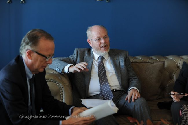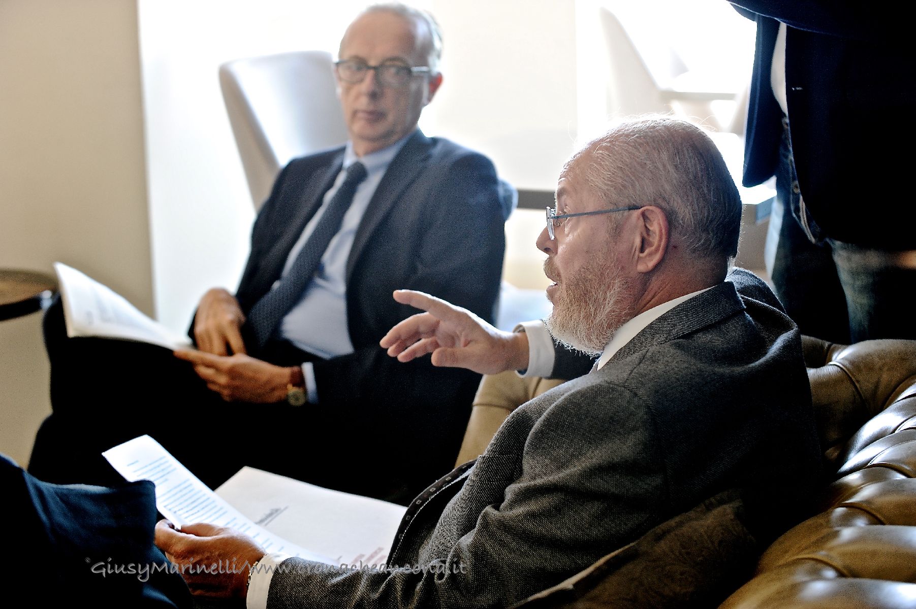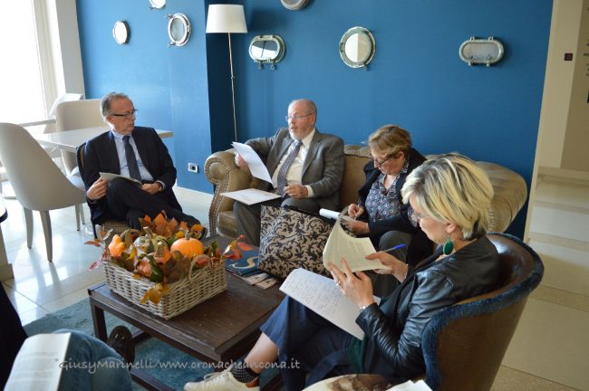 da sinistra, il segretario generale della Camera di Commercio, Michele De Vita, e commissario ad acta della camera Unica ed il presidente dell’ente di Ancona, Giorgio Cataldi