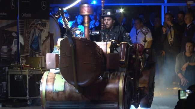 Al timone della serata il general manager Gerardo Savini che ha intervallato i suoi interventi con momenti di spettacolo: il pianoforte gigante suonato con i piedi dai ragazzi di “Tu si que vales”, la musica coinvolgente di un giovane violinista e un divertente monologo con l’arrivo di una suggestiva “macchina del tempo”, dedicato proprio alla longevità della Mercedes che anche nel 2118 racconta la sua storia. Finale con sfilata, ma non di abiti ma di eccellenze culinarie del territorio, due porchette giganti che sono state la base della cena accanto a salumi e formaggi e buon vino.