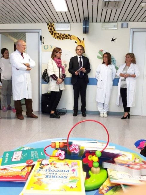 Oggi, 26 ottobre, alle ore 12,30, presso l’Unità Operativa di Pediatria dell’Ospedale di Senigallia, si è svolta la conferenza stampa di presentazione dei 617 libri donati dalla Libreria Giunti di Senigallia alla biblioteca destinata ai piccoli ricoverati nel reparto. Alla cerimonia hanno partecipato il Direttore dell’Area Vasta 2 ing. Maurizio Bevilacqua, la Responsabile dell’U.O. di Pediatria d.ssa Margherita Angeletti, il Direttore del Dipartimento Materno Infantile dr. Nelvio Cester, l’équipe medica e paramedica della Pediatria e Biancamaria Centanni della Libreria Giunti Al Punto di Senigallia. Un atto di solidarietà reso possibile anche dalla sensibilità e dalla collaborazione dei cittadini che hanno acquistato i libri per i bambini.