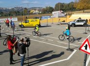 INAUGURAZIONE- Stamattina il taglio del nastro per l’impianto didattico di Campanari, voluto dalla Polizia locale, che ha riqualificato un’area degradata della frazione. Alla cerimonia c’era anche Marco Scarponi, il fratello del campione di ciclismo, impegnato nella Fondazione che porta il suo nome