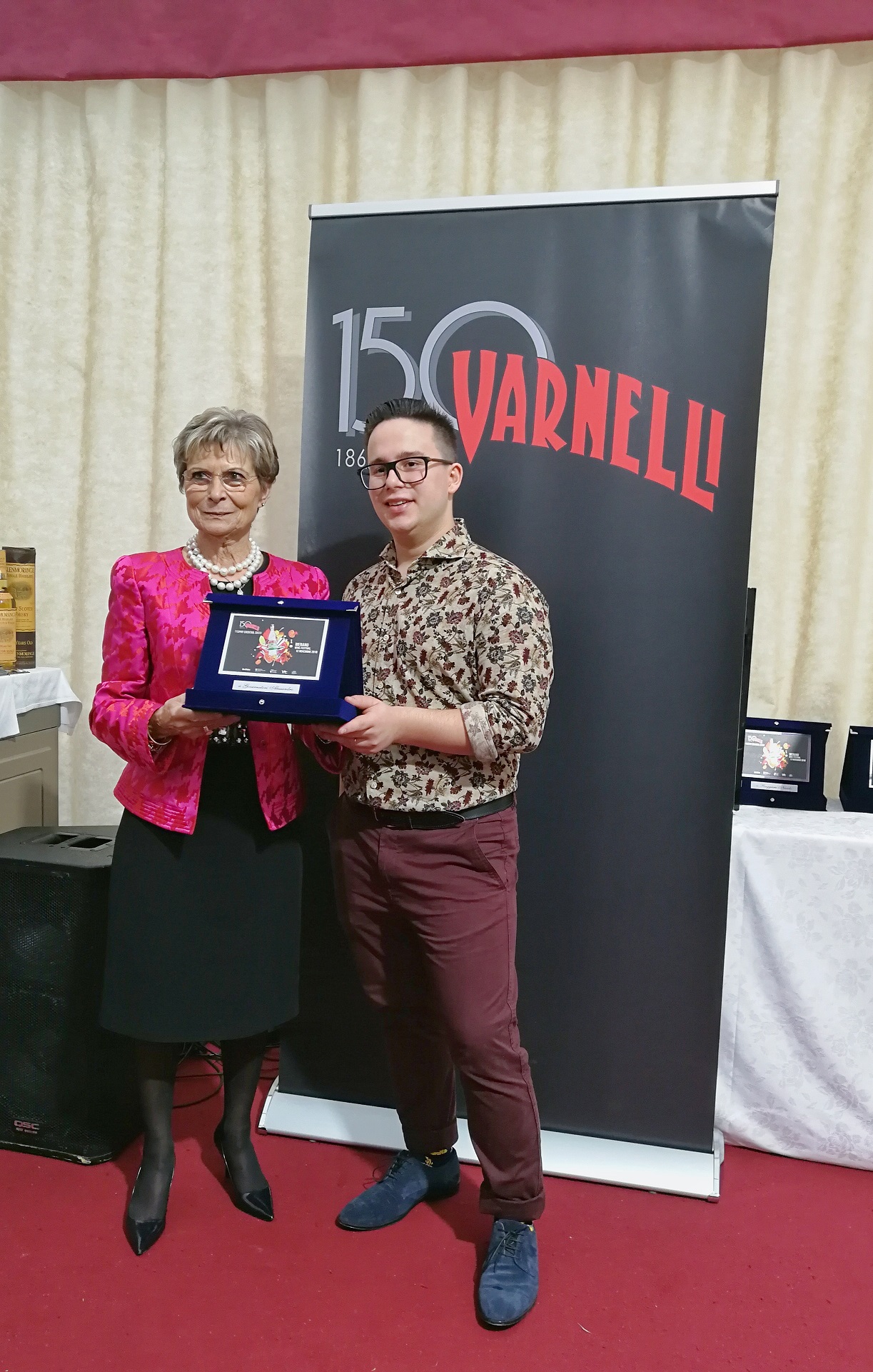 Simonetta Varnelli accanto al vincitore della competizione, Alessandro Governatori del Bar Torino