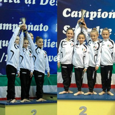 Domenica mattina in pedana le più piccole, la squadra Gold 3 con Elena Bartoletti , Gaia Mancini , Elisa Paciotti e Claudia Sarritzu , dopo aver eseguito i tre esercizi di qualificazione, accedono alla finale con il primo punteggio. In finale però nonostante un’ottima prova, migliore della qualificazione, cedono il posto alle toscane della Raffaello Motto che riescono a vincere con un distacco minimo. Anche questa squadra conquista quindi il titolo di Vice Campionesse Italiane.