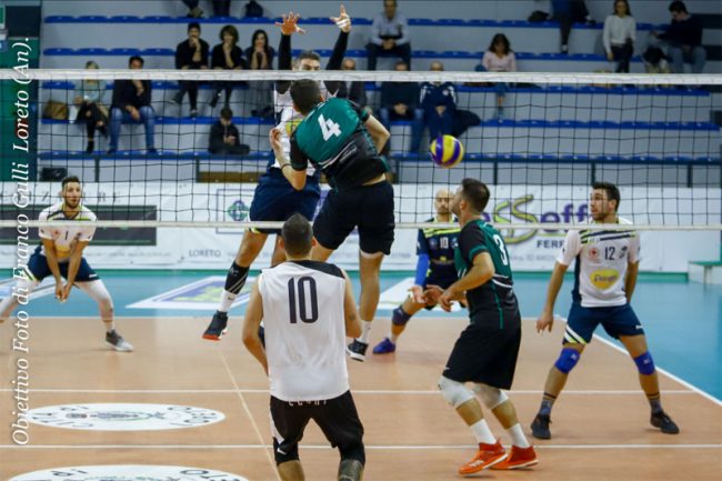 LORETO - Alla fine dell’incontro il centrale al primo anno in maglia Sampress, ha servito 26 volte. Domenica al Palaserenelli arriva Foligno