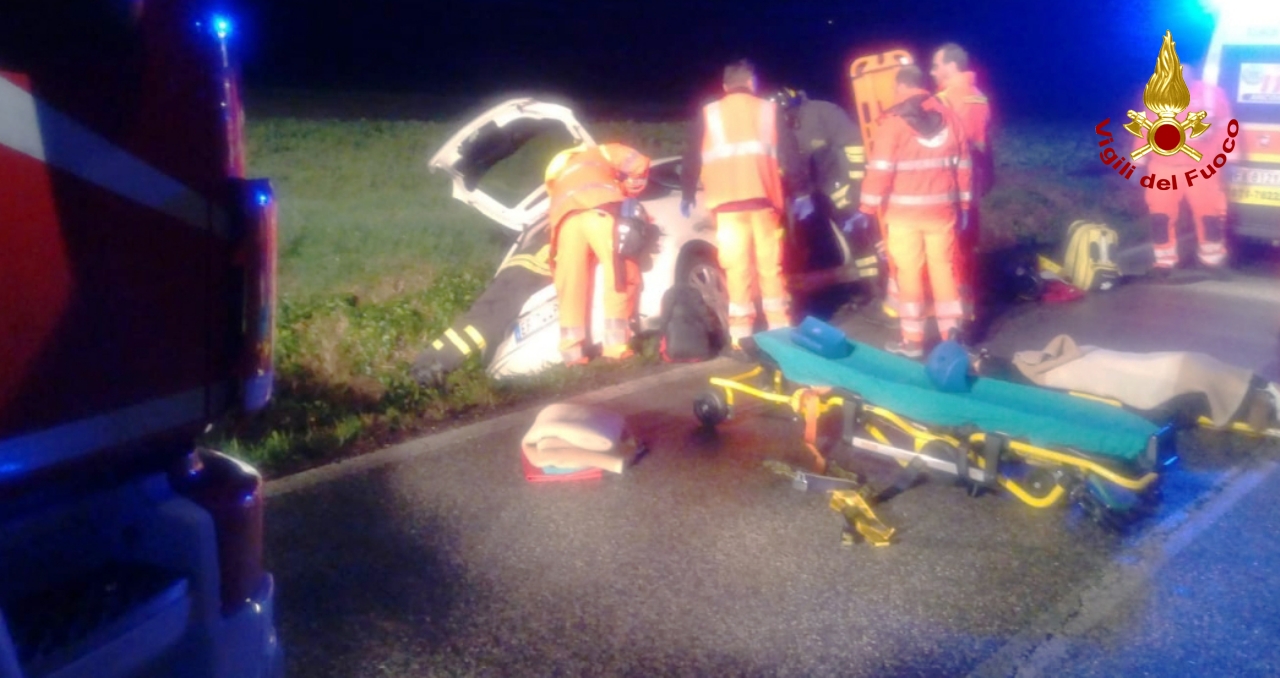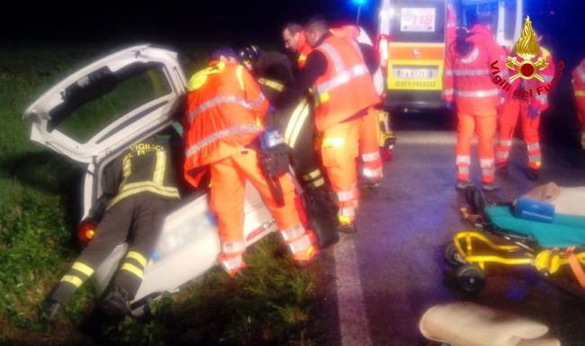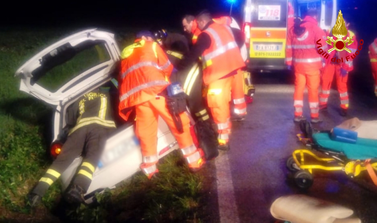 Nella tarda serata di ieri, 19 novembre, alle 22,30 circa, i vigili del fuoco sono intervenuti a Castelfidardo, in via Che Guevara, nei pressi del bocciodromo, per soccorrere automobilisti e passeggeri rimasti coinvolti in un incidente stradale. Per cause in fase di ricostruzione da parte della Polizia Stradale di Jesi, un furgone Iveco Daily di una ditta di Porto Recanati, guidato da D.A., da un 28enne di Somma Vesuviana,  si è scontrato con una vettura Alfa Romeo Mito sulla quale viaggiavano quattro ragazze, che dopo l’urto è stata sbalzata nella scarpata.