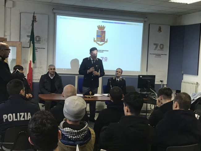 Grande successo per le celebrazioni dei 70 anni di Storia degli Stabilimenti della Polizia di Stato di Senigallia nella prima giornata dedicata agli studenti dell’Istituto Superiore Bettino Padovano di Senigallia fortemente voluta dal Direttore, dott. Giuseppe Tranzillo. Pienamente realizzata la finalità dell’incontro, ovvero far conoscere la Polizia di Stato alle nuove generazioni per ricordare che i suoi appartenenti sono costantemente al fianco dei ragazzi, che possono a loro rivolgersi con fiducia in tutti i momenti di difficoltà. Il Direttore Giuseppe Tranzillo ha invitato i ragazzi a studiare con passione e gioia perché dal loro impegno futuro di cittadini dipenderà il benessere della nostra società, la nostra libertà, la nostra sicurezza, la nostra salute, la nostra economia, le sorti del nostro Paese.