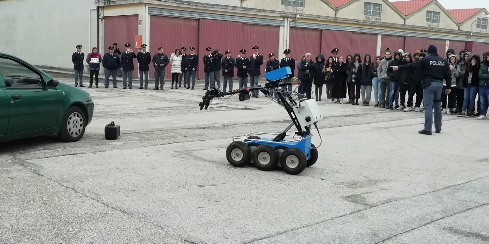 La giornata ha dato modo a circa 150 studenti delle classi terze, condotti agli Stabilimenti con pullman della Polizia di Stato messi a disposizione dal XIV Reparto Mobile di Senigallia, di effettuare un percorso rivolto alla legalità e alla conoscenza delle attitudini ed abilità di chi esercita da tempo tali professionalità e funzioni. In particolare i ragazzi, guidati anche dai dirigenti della Polizia di Stato Mabj Bosco e Antonio Capuano, hanno visitato il Centro Nazionale Armi, con l’esposizione di armi della Polizia di Stato in uso e storiche, ove è stata illustrata la Polizia di Stato dalla sua costituzione nel 1852 fino ai giorni nostri raccontata attraverso la Storia delle Armi, e il Centro Nazionale Recupero Materiali con un percorso storico dall’allestimento dei campi per le operazioni di Soccorso Pubblico negli anni ‘50, fino alle attività di riadattamento e riuso dei beni dell’Amministrazione della Pubblica Sicurezza svolte fino agli anni ’80,