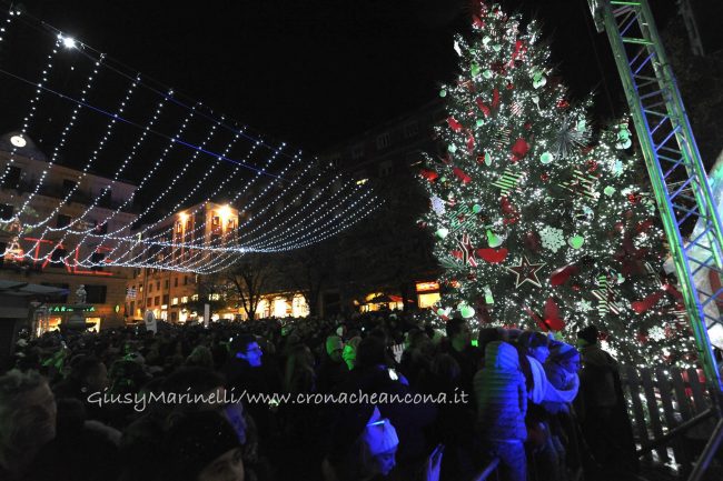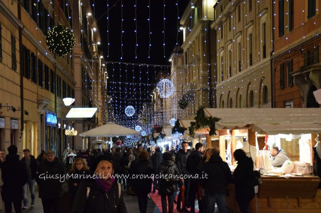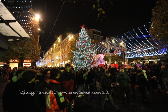 Se ieri la pioggia non ha fermato l’evento per l’accensione delle luminarie, oggi arriva il primo stop. E’ stato infatti annullato il concerto previsto nel pomeriggio sotto il grande albero di piazza Roma. Doveva esibirsi Francesca Borsini con dei pezzi pop e jazz. Intanto, il sindaco Mancinelli ha ringraziato questa mattina con un post sulla sua pagina Facebook quanti ieri sono accorsi in centro per creare un’atmosfera magica. Tutte le altre attrazioni saranno fruibili e attendono i visitatori, che saranno moltissimi in questa prima domenica di festa. Per potere accedere al villaggio natalizio è stata messo a punto anche quest’anno un adeguato piano per il trasporto e per la sosta, che contempla svariate gratuità.