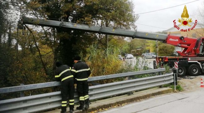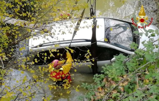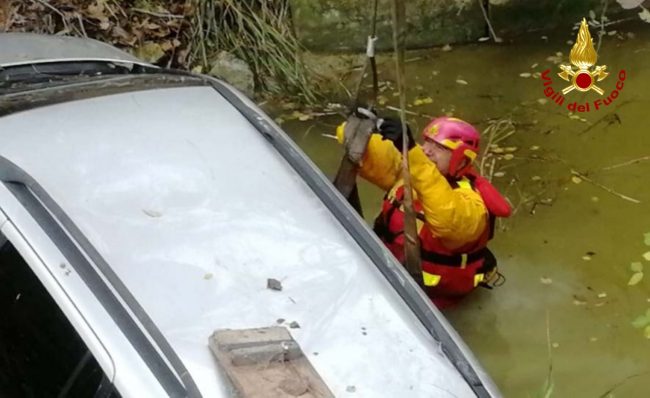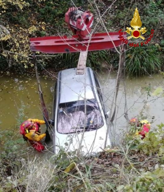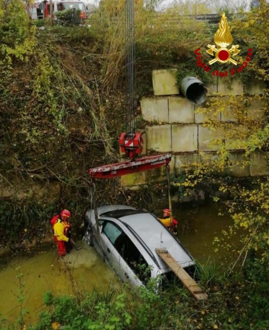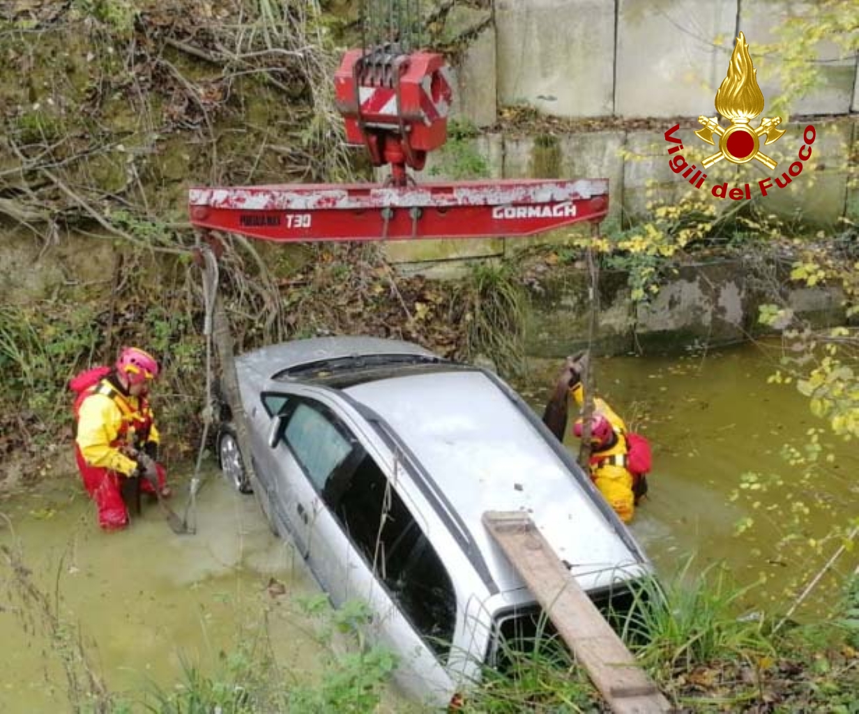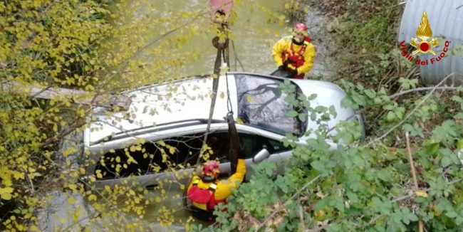 Scende dall’auto per andare a comprare un pacchetto di sigarette ma forse, per una banale disattenzione, dimentica di tirare bene il freno a mano e la vettura comincia a muoversi da sola. L’Opel Zafira prosegue il suo viaggio senza autista e finisce in un canale d’acqua dopo un volo di 8 metri. Serata amara per un 50enne di nazionalità romena che abitata ad Ostra. Ieri verso le 20 l’uomo era quasi arrivato a casa, aveva parcheggiato la sua auto al margine di via Vaccarile ma quando è uscito dalla tabaccheria, il mezzo era sparito dal posteggio, planato dopo il ‘tuffo’ nel canale. L’oscurità ha consigliato ai vigili del fuoco di Senigallia di avviare le operazioni di recupero dell’auto solo stamattina. La vettura è quindi rimasta a mollo per tutta la notte e poche ore fa, utilizzando l’autogru intervenuta dalla sede Centrale di Ancona, il personale del soccorso fluviale dei vigili del fuoco di Senigallia, ha ancorato e recuperato l’automezzo.