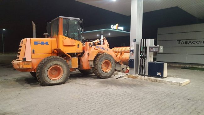 Assalto in notturna al bancomat del self service del distributore di benzina Q8 easy di via Jesina a Castelfidardo. Una delle colonnine sulla Provinciale Valmusone è stata sfondata con l’aiuto di una ruspa, rubata poco prima da un vicino cantiere. Il mezzo pesante e’ stato lanciato contro la cassa che conteneva gli introiti del week end poi l’escavatore è stato abbandonato nei pressi del piazzale dell’area di servizio. Il manipolo di uomini, composto da almeno tre individui incappucciati ripresi della telecamere del sistema di videosorveglianza, è entrato in azione all’3.50 circa della scorsa notte, quando è scattato l’allarme, riuscendo poi a fuggire con un bottino (ancora in fase di quantificazione) di circa un paio di migliaia di euro. lasciandosi alla spalle ingenti danni. La banda ha pianificato tutto alla perfezione e al termine del colpo, che presenta analogie con quelli messi a segno di recente in altri distributori Q8, è fuggita prima piedi e poi su un mezzo con targa ‘pulita che aspettava distante dal distributore’. Non è il primo furto che subisce quest’area di servizio che si trova della Sp3, arteria stradale che attraversa anche un’area industriale e che quindi è meno trafficata di notte. Come era già avvenuto nello scorso mese di settembre, anche in questo caso nessuno si è trovato ad assistere al furto, nemmeno automobilisti in transito. Sull’episodio indagano i carabinieri.