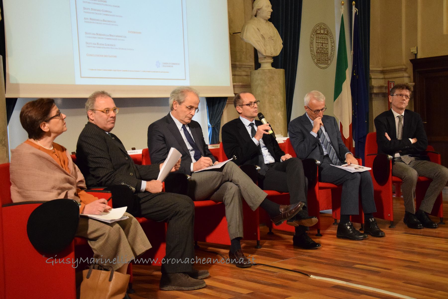 A fare gli onori di casa della giornata, il presidente della Camera di Commercio delle Marche, Gino Sabatini, che ha dato avvio alla tavola rotonda a cui hanno preso parte, oltre a Sottani, il presidente della Corte di Appello di Ancona, Luigi Antonio Catelli, il rettore dell’Università Politecnica delle Marche, Sauro Longhi, i presidenti degli Ordini degli avvocati e dei commercialisti, rispettivamente Serenella Bachiocco e Stefano Coppola, e il dirigente della Procura generale Luigino Pisello. Presenti nelle prime file anche il questore di Ancona, Oreste Capocasa, il prefetto Antonio D’Acunto e la segretaria generale della giunta regionale, Deborah Giraldi.