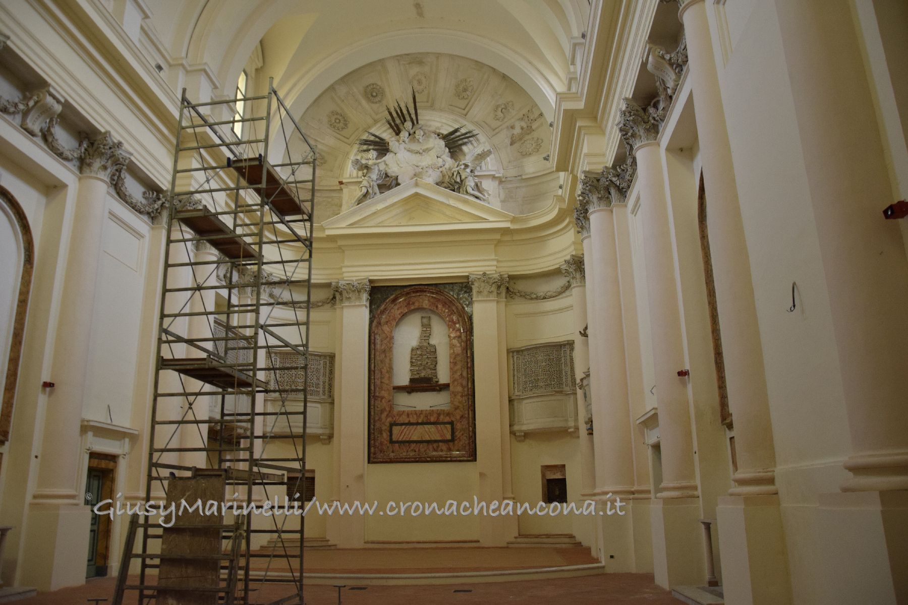 Quarantasei anni, ed ecco una fumata bianca che definire attesissima è un eufemismo, quella per la riapertura della chiesa di San Gregorio Illuminatore (già San Bartolomeo Apostolo), fissata per venerdì 14 dicembre. Una fumata bianca, tuttavia ingrigita – così la percepiranno gli anconetani e si spera i turisti – perché nel prezioso edifico di culto sconsacrato che si affaccia su via Birarelli a fianco dell’Anfiteatro Romano, non si troverà traccia alcuna delle opere pittoriche che originariamente lo caratterizzavano. Questione che ovviamente non riguarda quelle andate perdute definitivamente nel tempo, ma quelle ancora esistenti e, in teoria, facilmente recuperabili. A cominciare dalla Pala del Siciolante, che risplendeva fino ai primi dell’800 dietro l’altare maggiore ed è relegata nella sagrestia delle chiesetta di Calcinate, in provincia di Bergamo, e di quelle ancora dimenticate in una caserma della Guardia di finanza.