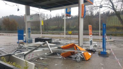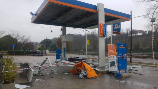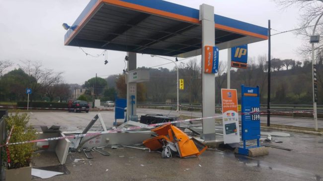 Blitz notturno lungo la Cameranense: assaltato il distributore di benzina Ip da un gruppo di banditi. Sono riusciti a portare via la cassaforte della colonnina bancomat della stazione di servizio che si trova poco prima della salita “degli Angeli”. Il distributore è andato completamente distrutto, assieme alle pompe di benzina. Tra danni materiali e contanti rubati si è stimato un anno, ancora parziale, che si aggira attorno ai 50 mila euro. Il furto è avvenuto attorno alle 3 di notte. I ladri sono entrati in azione con un camion rubato poche ore prima da un cantiere di Osimo. Con il mezzo utilizzato come ariete sono riusciti a sfondare il distributore, scardinando sia la colonnina bancomat che quella da cui viene erogata la benzina. La cassaforte è stata caricata su un’auto. E su questa hanno trovato una via di fuga, verso Camerano, i malviventi, abbandonando invece sul posto il camion utilizzato per l’assalto. Il mezzo pesante è stato collocato in mezzo alla strada, per consentire ai banditi di fuggire via indisturbati. L’allarme è scattato e subito sul posto sono arrivate le pattuglie del Norm dei carabinieri per i rilievi di rito. Ad intervenire anche Alessandra Gramacci, titolare del bar degli Angeli, locale nell’area della stazione di servizio. L’esercizio commerciale non è stato, per fortuna, toccato dai banditi. Questa mattina era regolarmente aperto.