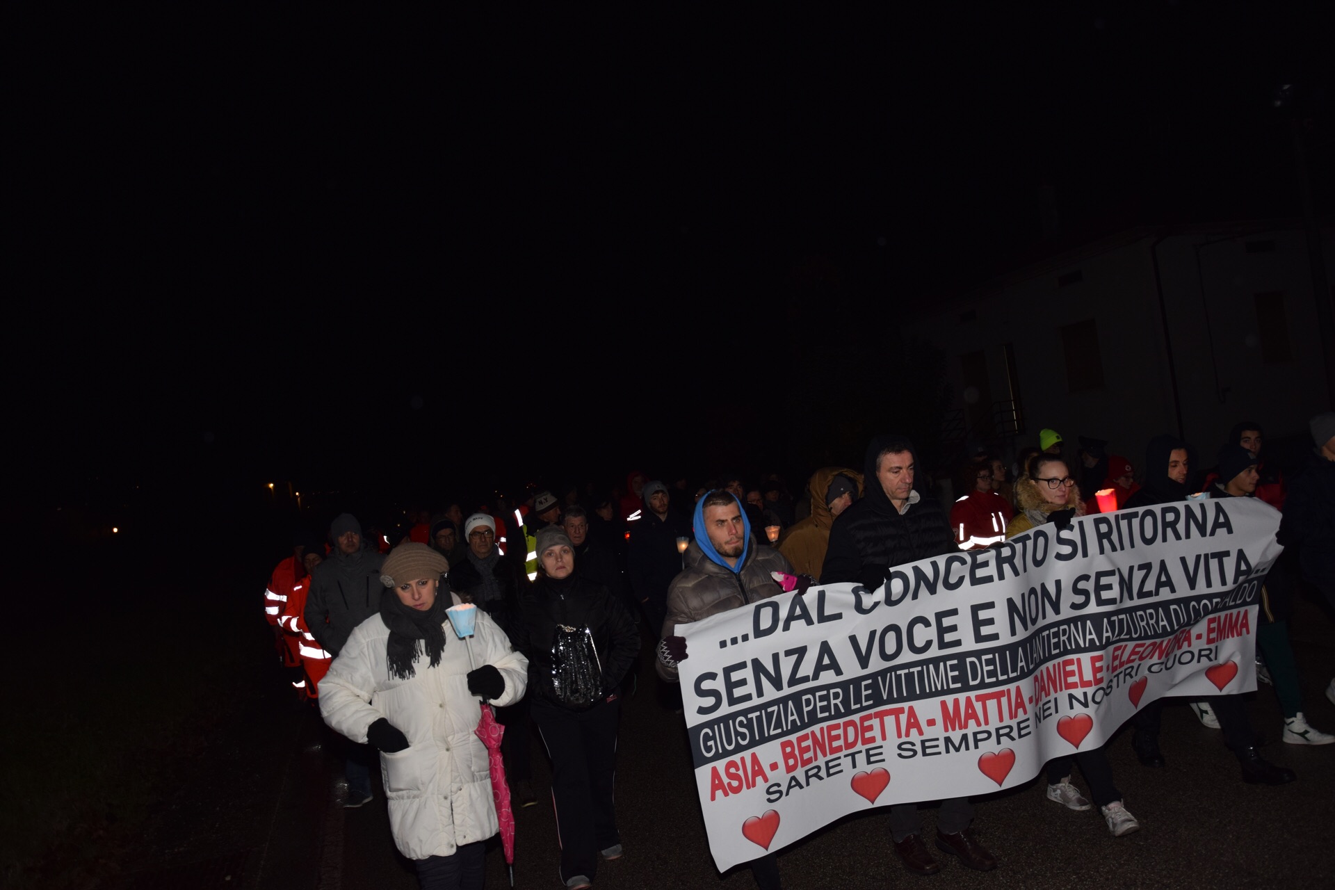 Nel corteo hanno camminato per circa un chilometro e mezzo anche il sindaco Matteo Principi, il presidente del Consiglio regionale delle Marche Antonio Mastrovincenzo e altri primi cittadini di Comuni dell”hinterland senigalliese. La fiaccolata è stata aperta da uno striscione che chiedeva giustizia per chi non c’è più e lanciava un messaggio di affetto e immortalità del ricordo di chi è stato travolto dalla calca e non si è più risvegliato con la scritta ‘Dal concerto si esce senza voce non senza vita’. Davanti alla discoteca è stato rispettato il silenzio rotto soltanto dai singhiozzi di una ragazzina scampata alla tragedia che non è riuscita a trattenere la commozione e la sua sofferenza. Poi sul piazzale del locale, presidiato da forze dell’ordine, protezione civile e attivisti delle associazioni di volontariato, sono stati deposti mazzi di fiori e lumini.