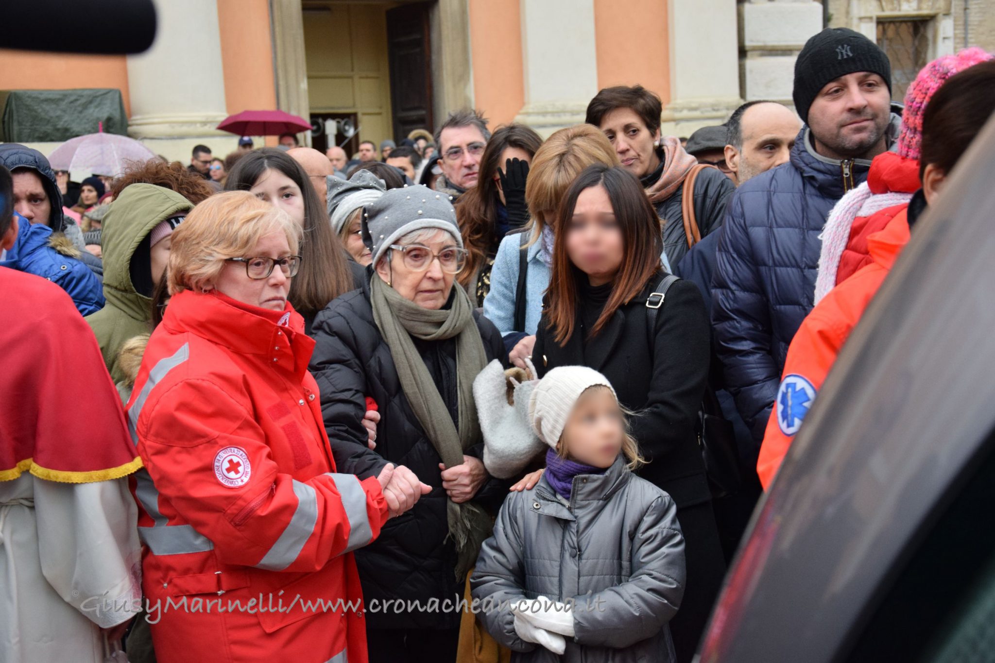Al termine della toccante cerimonia funebre, la folla composta si è spostata all’esterno, sul sagrato, in una marcia lenta accompagnata dalle note di “The sound of silence” e di “Halleluja” di Leonard Cohen. Intanto i bimbi hanno cercato di trattenere il feretro. “Adesso ci portano via mamma?”, le piccole voci incapaci di accettare e di comprendere. “No, mamma starà sempre con noi…”, rassicura papà Paolo. Mentre i partecipanti si asciugano le lacrime, scese di fronte allo strazio di quei bimbi soli. Il celebrante ha invocato la vicinanza, il sostegno della collettività a questa sfortunata famiglia chiedendo di stare accanto al marito “nel difficile compito di essere colonna per i figli e per la comunità”. Anche alla famiglia di Eleonora Girolimini la Prefettura di Ancona aveva fatto pervenire il messaggio di cordoglio del presidente della Repubblica, Sergio Mattarella. A Fano invece tanti giovani hanno salutato Benedetta Vitali, 15 anni, atleta della Virtus Pallavolo, anche lui scomparsa nell’inferno della discoteca di Corinaldo. Sulla bara era stesa la maglia della società.