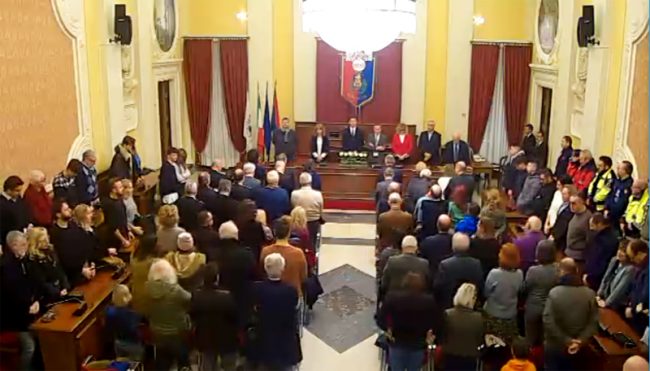 Il momento di silenzio in memoria delle vittime della Lanterna Azzurra, stamattina in consiglio comunale di Senigallia