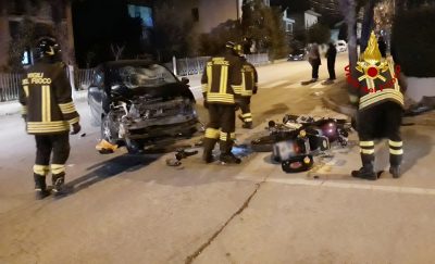 Auto contro moto: un ferito e strada chiusa al traffico. L’incidente è avvenuto questo pomeriggio, attorno alle 19.15, in via Leonardo Da Vinci. Per cause in fase di ricostruzione, una moto Aprilia si è scontrata con una vettura, una Renault Twingo. Il conducente dell’auto rimaneva illeso mentre il motociclista (un 21enne di Castelbellino) dopo le prime cure sul posto veniva trasportato dal personale dell’automedica del 118 e della Croce verde di Jesi al pronto soccorso dell’ospedale di Torrette con un codice rosso. Le sue condizioni sono gravi, ma non dovrebbe essere in pericolo di vita: fortunatamente indossava il casco ben allacciato e sebbene lo scontro sia stato violento, durante le fasi del soccorso è rimasto sempre cosciente. I vigili del fuoco hanno prestato soccorso all’infortunato, successivamente hanno messo in sicurezza lo scenario dell’incidente. Sul posto una pattuglia della Polstrada di Fabriano per  i rilievi di legge. La strada è ancora chiusa al traffico.