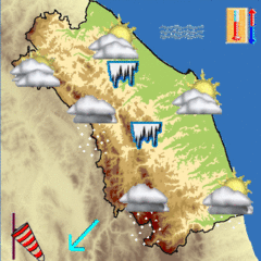 Il nuovo bollettino della Protezione civile delle Marche prevede per le prossime ore nubi in ingresso dal mare, precipitazioni deboli sparse nelle zone interne, locali lungo la costa, nevose fino a quote di pianura e temperature invariate con venti moderati da nord-est, a tratti forti lungo la costa e sui rilievi, tendenti a ruotare da nord-ovest nel corso del pomeriggio. Il mare resterà molto mosso e sono attese gelate durante le ore più fredde della giornata. Per il fine settimana si prevede  un miglioramento delle condizioni meteorologiche su tutte le Marche, associato ad un graduale rialzo termico.