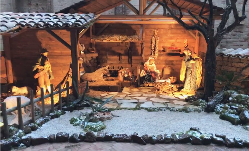 Spolverata di neve sul presepe dell’atrio comunale di Osimo (foto Bruno Severini)