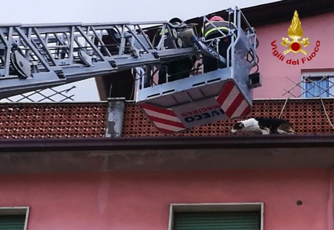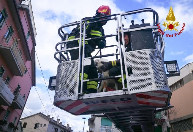 Tenta di scavalcare una recinzione e si ferisce a una zampa: cagnolino salvato dai vigili del fuoco. Il soccorso è scattato questa mattina, poco prima di mezzogiorno, in un condominio di via Bocconi. Un cane di nome “Jonni” tentando di scavalcare una recinzione di un terrazzo posto al terzo piano, si feriva ad una zampa rimanendo bloccato nel cornicione. I vigili del fuoco utilizzando l’autoscala hanno raggiunto l’animale, recuperandolo. E’ stato affidato alla proprietaria per far curare la zampa leggermente ferita.