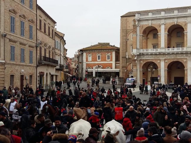 La benedizione degli animali in Piazza della Madonna, stamattina a Loreto, per la festa di Sant’Antonio Abate