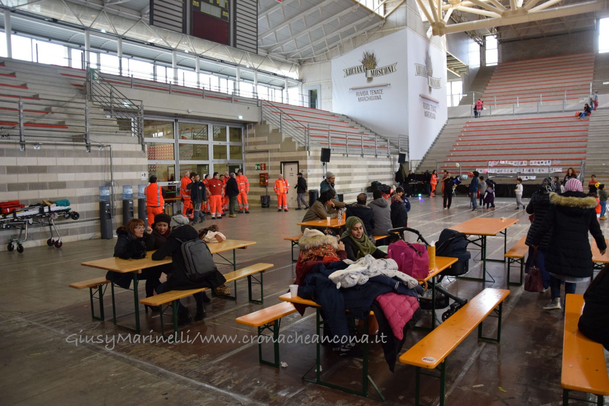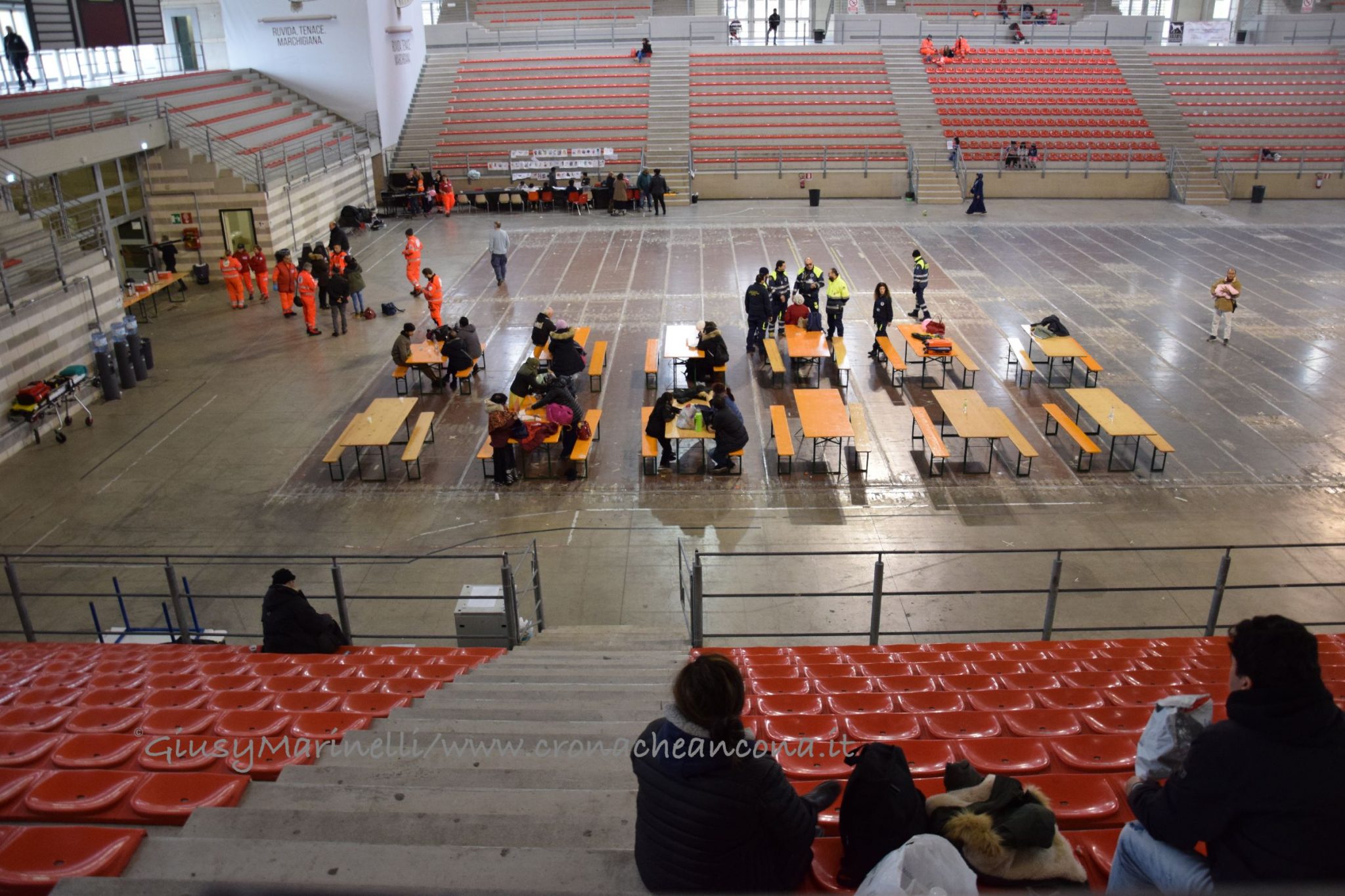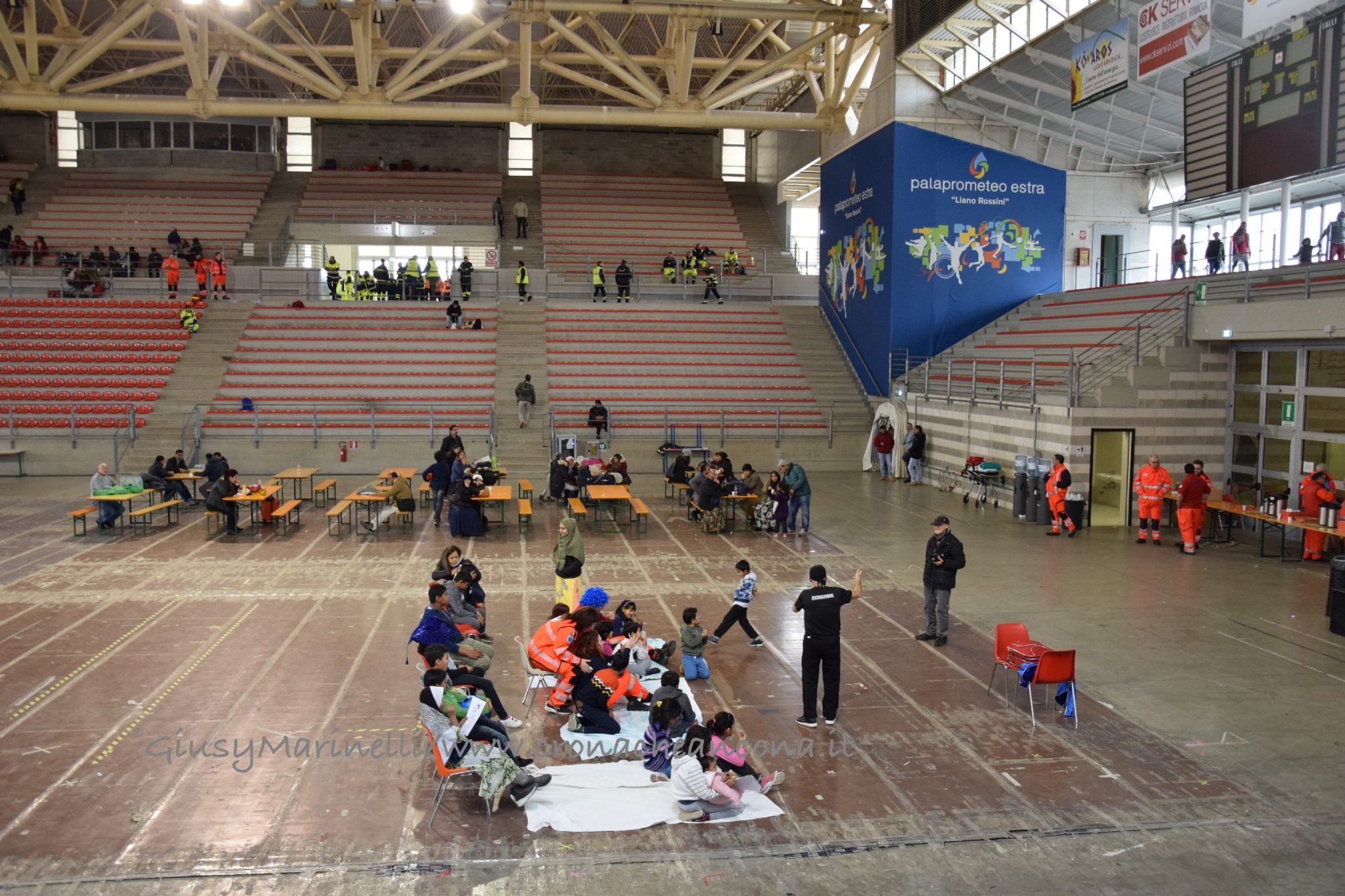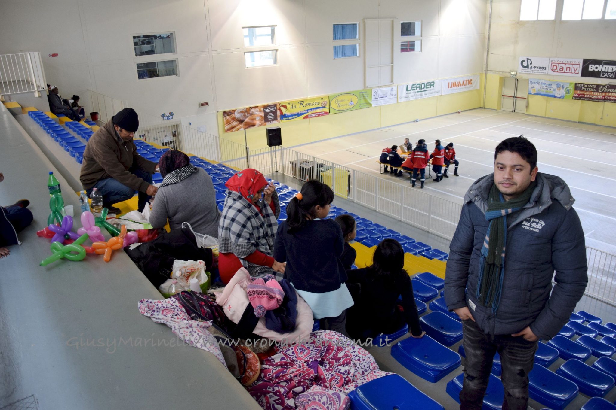 Flop centri accoglienza – Mentre si svolgevano le concitate fasi della bonifica, i 12mila sfollati restavano in attesa di poter tornare nelle loro case. Molti trovando rifugio da amici e parenti, alcuni in giro per le zone non interdette della città, altri in gite fuoriporta. Decisamente pochi – circa 200, su 6mila preventivati – nei tre centri di accoglienza allestiti per chi non avesse avuto altro posto dove andare, tanto che dopo un primo sopralluogo del comandante della Polizia Municipale, Liliana Rovaldi, e dell’assessore Foresi, si è optato per accorpare la cinquantina di persone al Palascherma con gli sfollati al PalaPrometeo, dove c’erano anche animazione per bambini e viveri. Si è invece deciso di lasciare aperto il PalaBrasili perché «anche lì c’era l’animazione ed i ragazzi si stavano divertendo, quindi abbiamo preferito non spostarli», spiega Foresi.