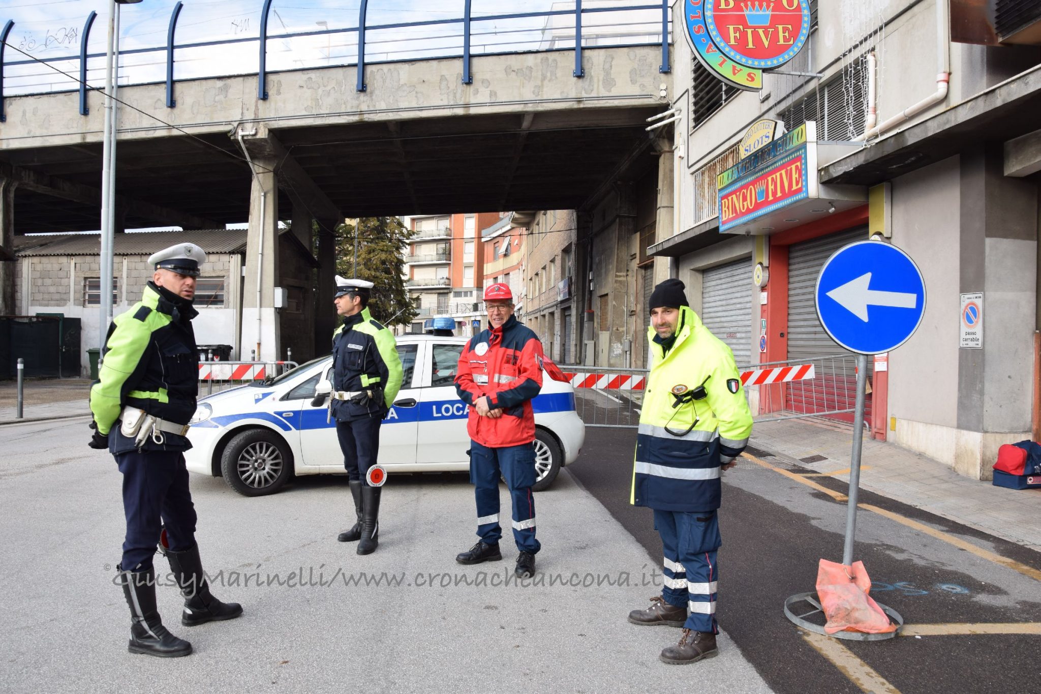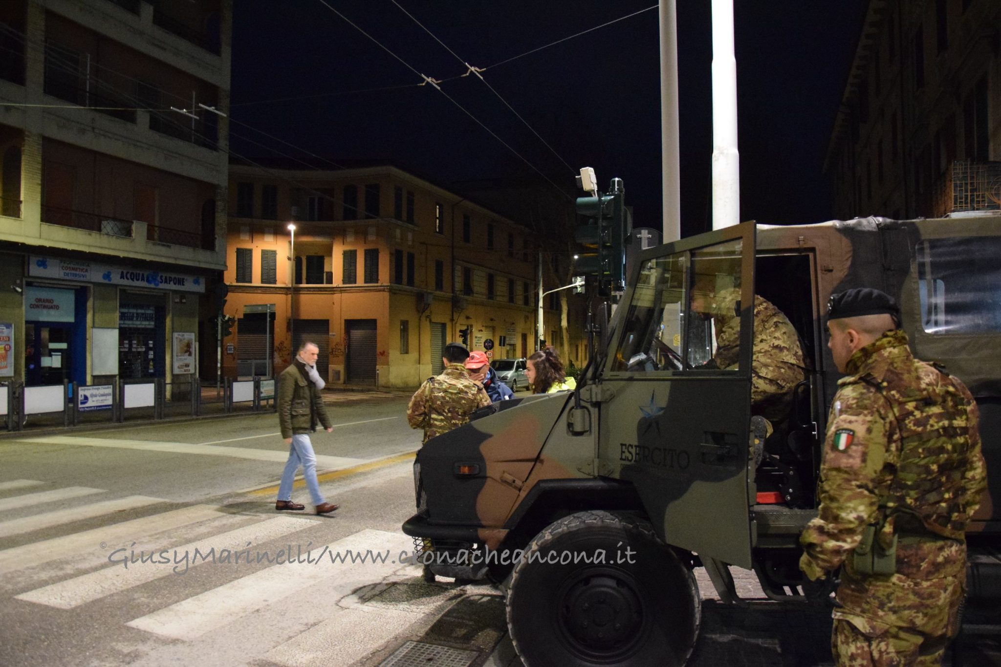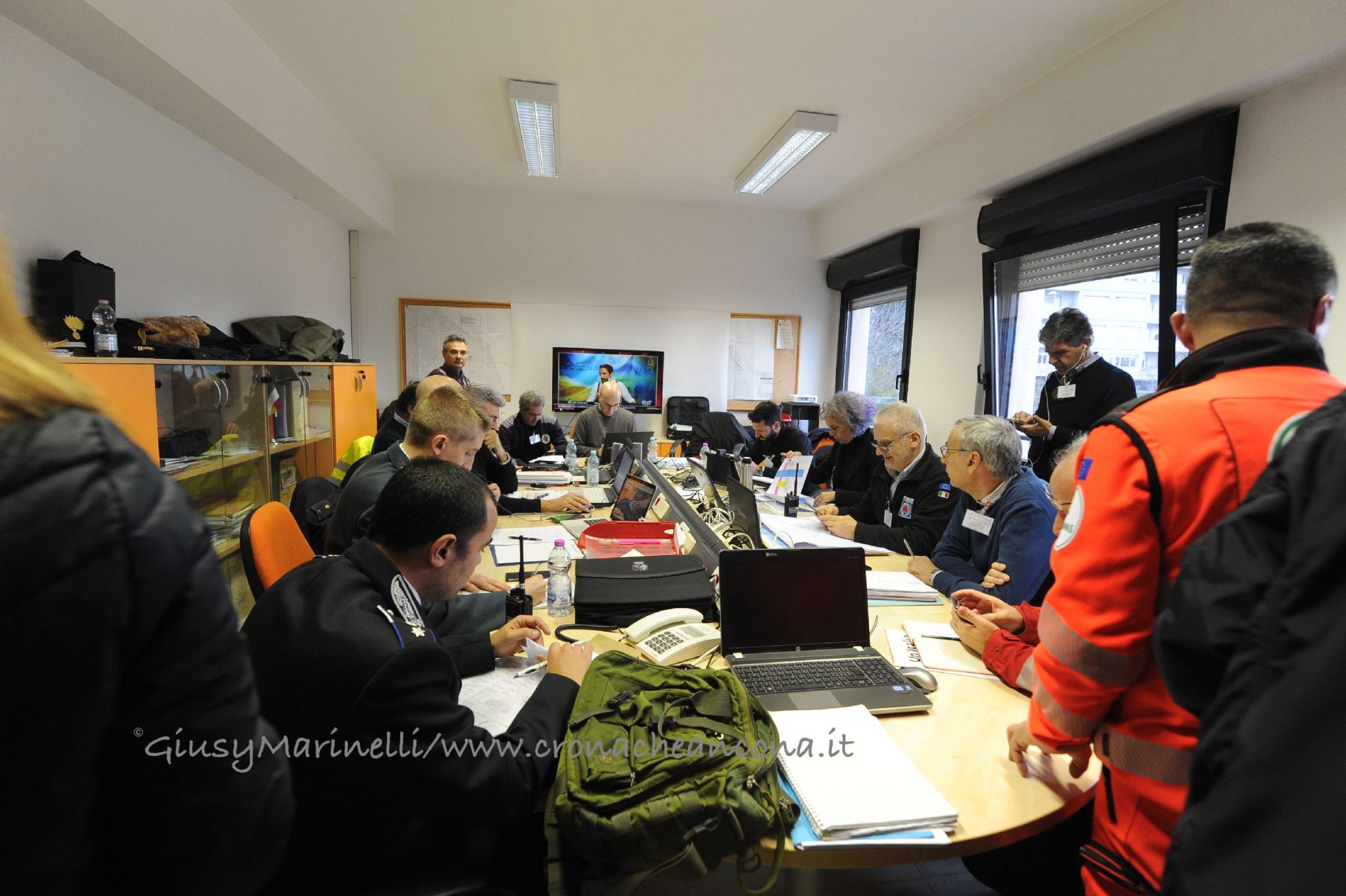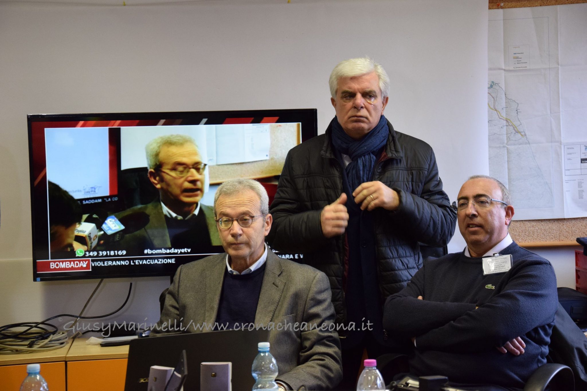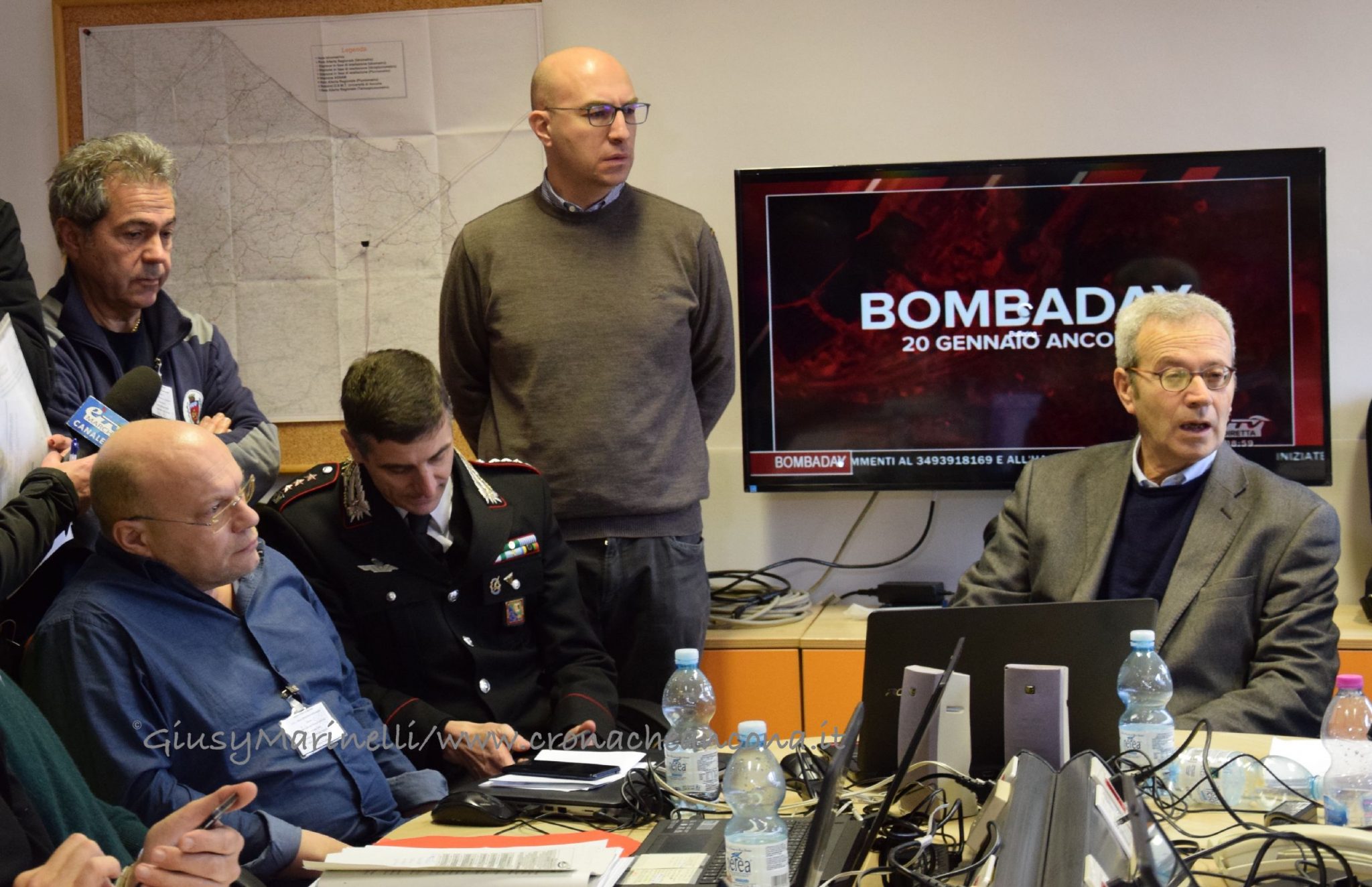 La Sala Operativa Integrata – Contemporaneamente all’inizio della procedura di evacuazione, alle 5 si è riunita presso il comando provinciale dei Vigili del fuoco la Sala operativa integrata, coordinata dalla Prefettura di Ancona e composta da tutti gli attori coinvolti nelle operazioni collegate alla bonifica dell’ordigno: Esercito, Questura, Vigili del fuoco, Polizia di Stato, Carabinieri, Guardia di Finanza, Polizia provinciale, Polizia ferroviaria, Polizia stradale, Polizia municipale, Protezione civile regionale, Comune, Rfi, Asur, 118, Croce Rossa e Gialla, Anpas, Conerobus, ed i servizi come Enel, Edma gas e Terna. Alle 9, è arrivato il prefetto Antonio D’Acunto per il primo briefing – affiancato dal suo vice Di Nuzzo che non ha mai lasciato la Soi – ed ha rassicurato tutti facendo sapere che «tutto sta procedendo secondo il piano», nonostante qualche intoppo nelle procedure di evacuazione.