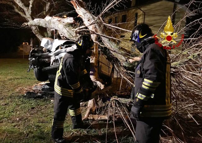 si schianta contro un albero,
