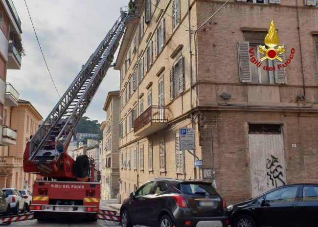 I vigili del fuoco sono intervenuti stamattina alle 09:30 circa ad Ancona in via Orsi per parti pericolanti da un cornicione di una palazzina. La squadra è arrivata sul posto anche con l’autoscala ed ha rimosso le parti immediatamente pericolanti. La parte sottostante è stata transennata a cura dell’ufficio tecnico comunale. Non si segnalano persone coinvolte.